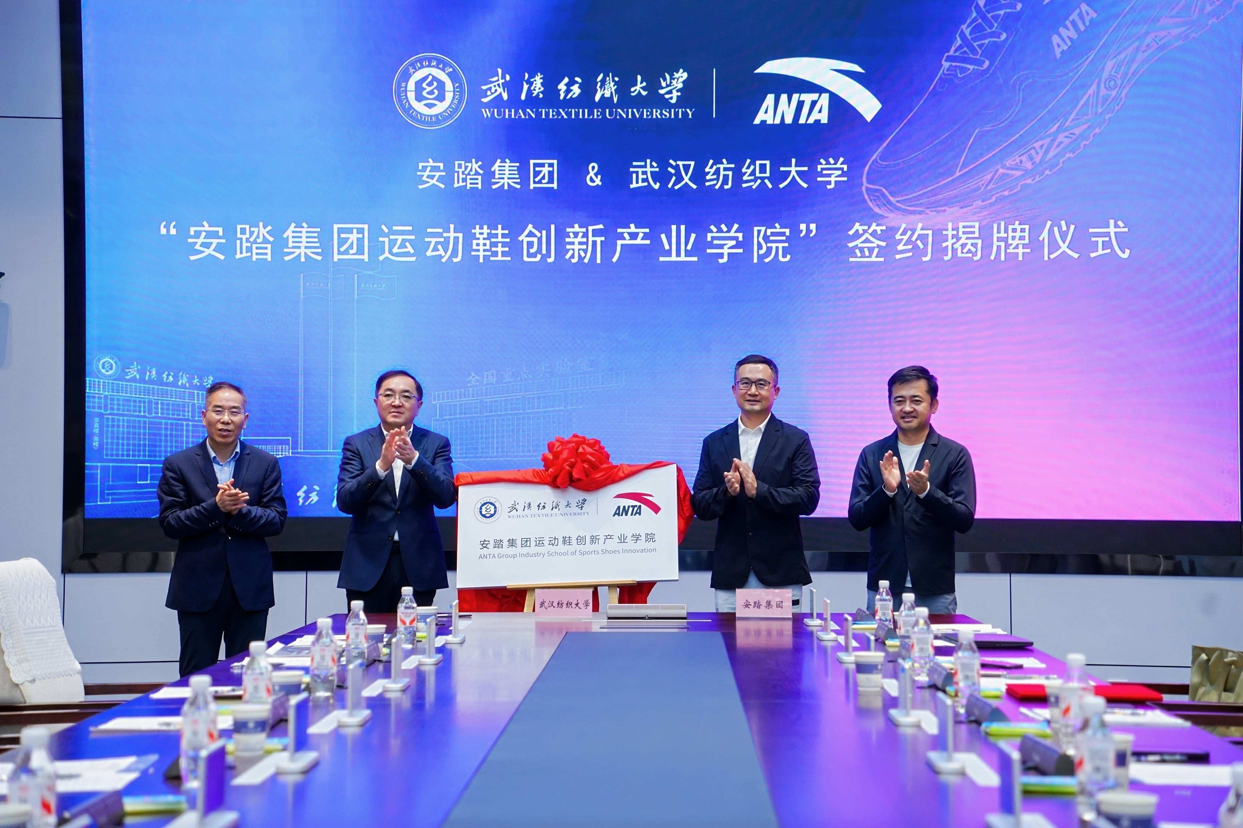 与会人员在签约仪式上开展了深入交流。在双方的共同见证下,安踏集团科研创新部创研管理总监杨建祥与创新设计学院院长石元伍代表双方签署了合作协议。安踏集团首席运营官陈科与校长傅欣共同为“安踏集团运动鞋创新产业学院”揭牌。