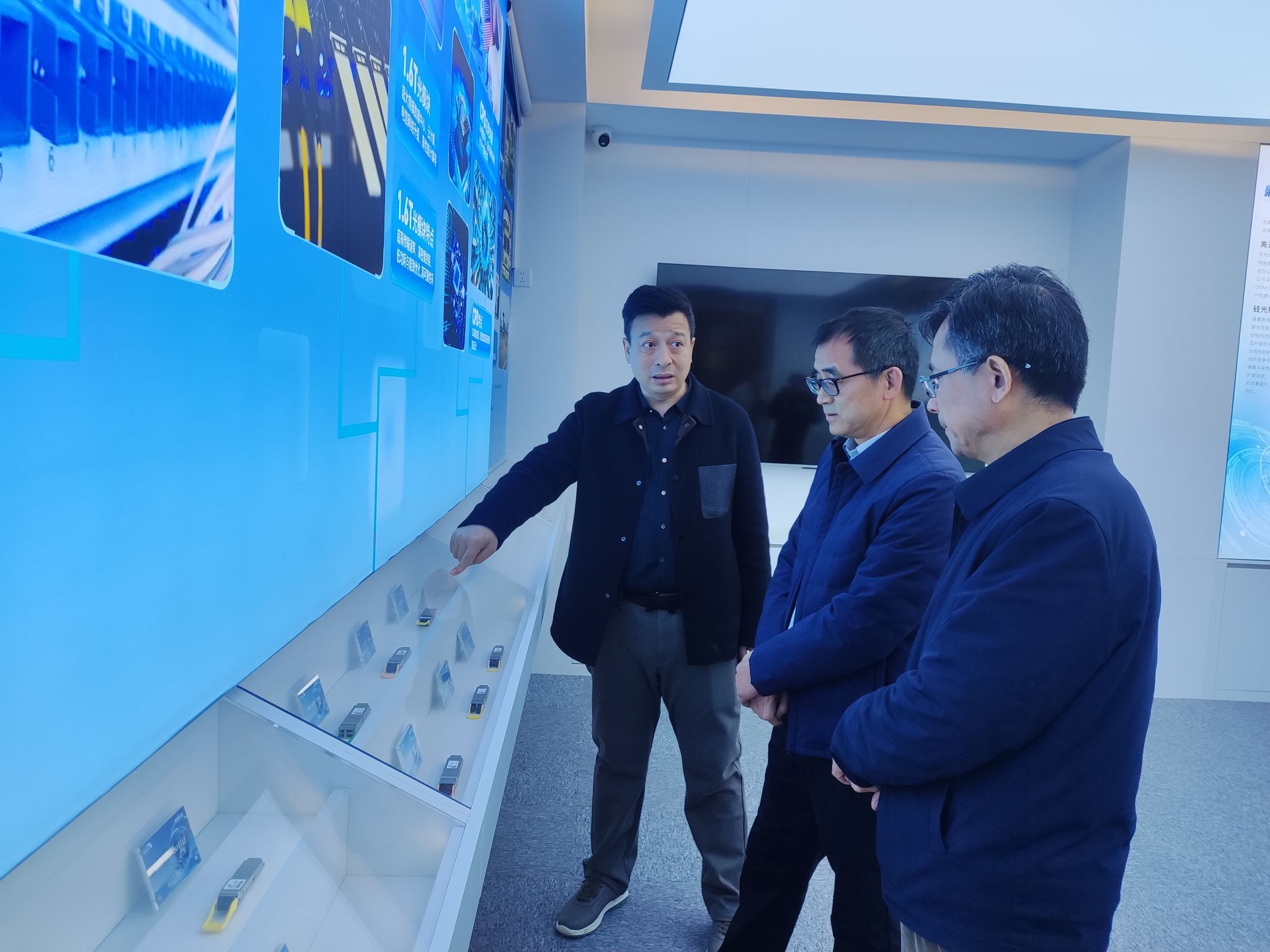 随后,姜明华一行来到位于鄂州市的武汉优炜芯科技有限公司、湖北深紫科技有限公司亲切看望微电子学院院长陈长清,并举行了校企合作座谈交流。陈长清主持座谈会,介绍了两家企业技术研发实力、产品优势特色和建设进展,并对前期联合开展本科生实习实训、联合共建工程研究中心等合作情况进行了介绍。在认真听取介绍后,姜明华就进一步深化校企合作提出三点期望:一是立足当前深化人才培养合作,在公司新基地建设过程中充分考虑学生实习实训的工作、生活条件保障,在校企合作中推动企业加快成长和微电子学院人才培养水平提升;二是畅想未来进一步深化合作,依托双方科研平台、人才团队优势,赋能学校“双一流”建设和企业跨越发展;三是挖掘光芯片优势特色,进一步凝练和突出微电子学院学科、科研和人才培养特色,以光芯片产业需求为核心,在紫外光芯片、红外光芯片、光通信等领域谋划布局,打造服务光芯片设计、制造、封测等产业链关键环节的学科方向和人才培养体系。