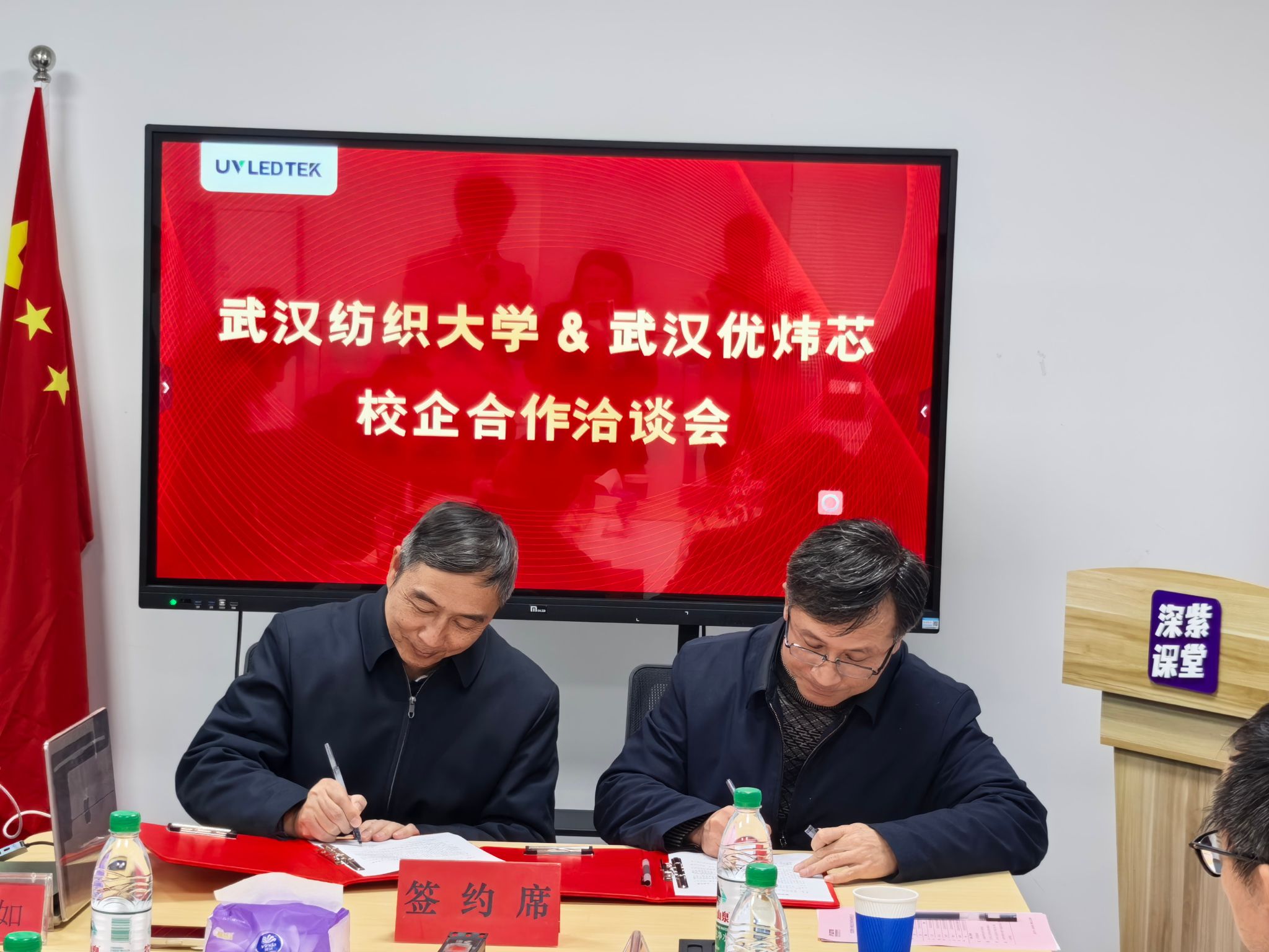 双方在公司会议室举行了校企合作座谈会。危进对姜校长一行表示热烈欢迎,对公司产业布局、产品研发、产销情况、发展愿景等进行了全面介绍。姜明华介绍了武汉纺织大学办学历史、办学规模和学科专业结构,重点介绍了学校“双一流”建设情况,就深入开展校企合作提出了建设性意见。微电子学院副院长(主持工作)何云斌介绍了学院学科专业、师资力量、科研平台和本科生、研究生培养情况。双方围绕产教融合、学生实习实训、毕业生招聘和企业技术研发项目等合作事宜进行了深入交流洽谈。双方签订了校企合作协议,并举行了“研究生工作站”“就业实习基地”授牌仪式。