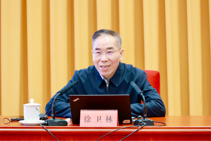 中国工程院院士、武汉纺织大学党委书记徐卫林教授作专题报告。受访者供图