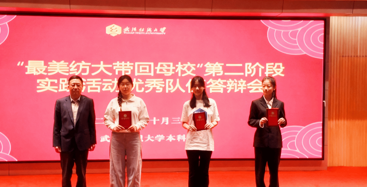10月31日下午,第七届“把最美纺大带回母校”第二阶段暑期社会实践公开答辩在武汉纺织大学阳光校区国际学术报告厅顺利举行。本科生院院长王济平教授,学工部、校团委、本科生院招生工作相关负责人,以及部分二级学院党委副书记参加答辩会。各学院实践团队代表、学生代表参与此次活动。