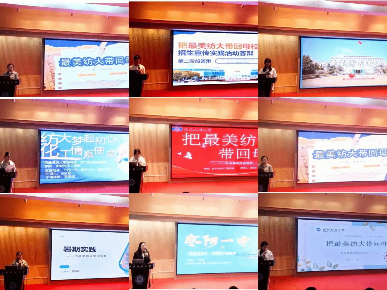 本届“把最美纺大带回母校”第二阶段暑期社会实践活动自5月启动以来,各学院共组织500支团队,覆盖了22个省的近400所高中。经各二级学院初评推荐,54支团队荣获团队优秀奖,24支团队入围决赛。决赛答辩会上,各团队通过实物展示、视频回顾、PPT讲解等方式,展示了精彩的实践经历,分享了团队在实践过程中的感悟与收获。