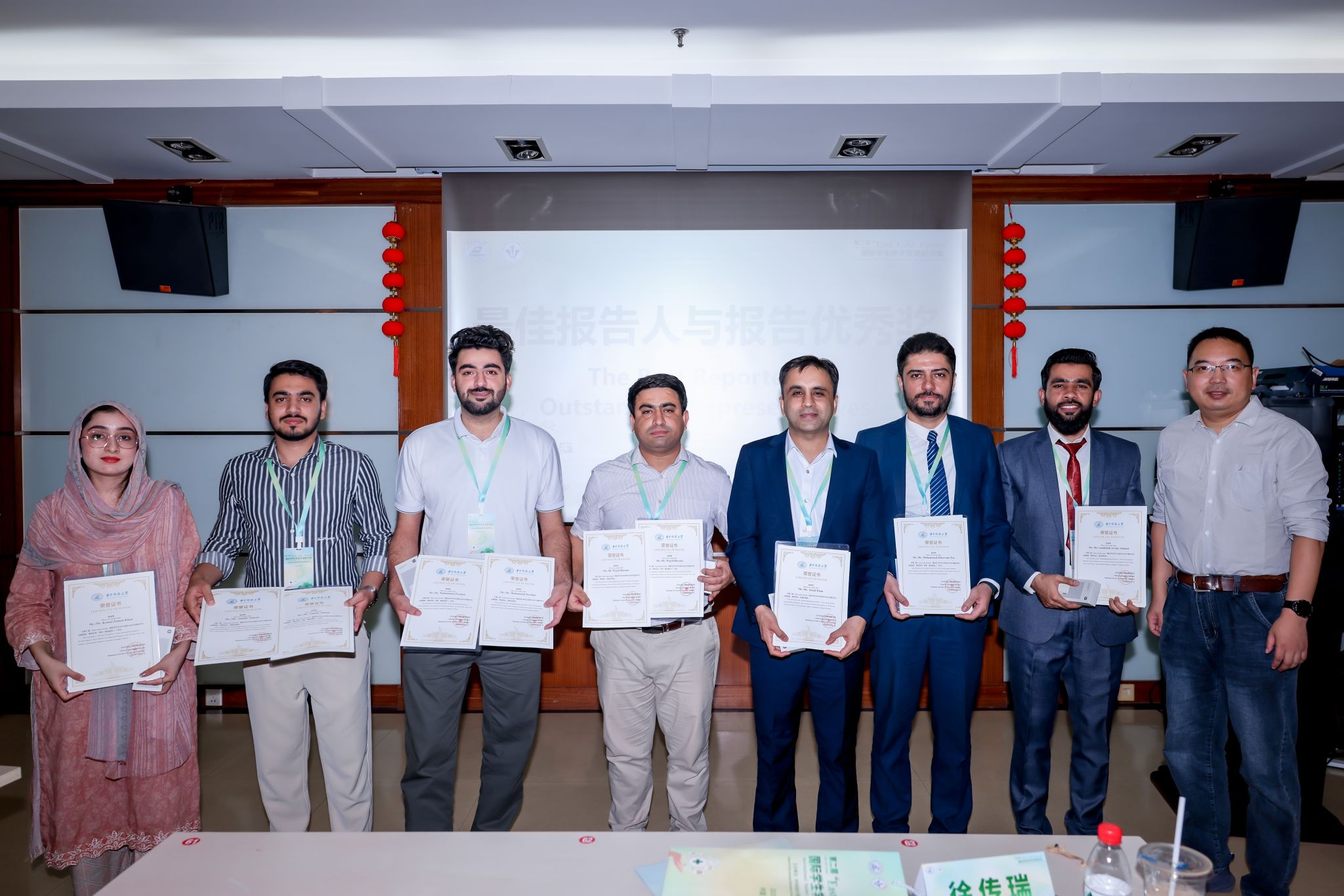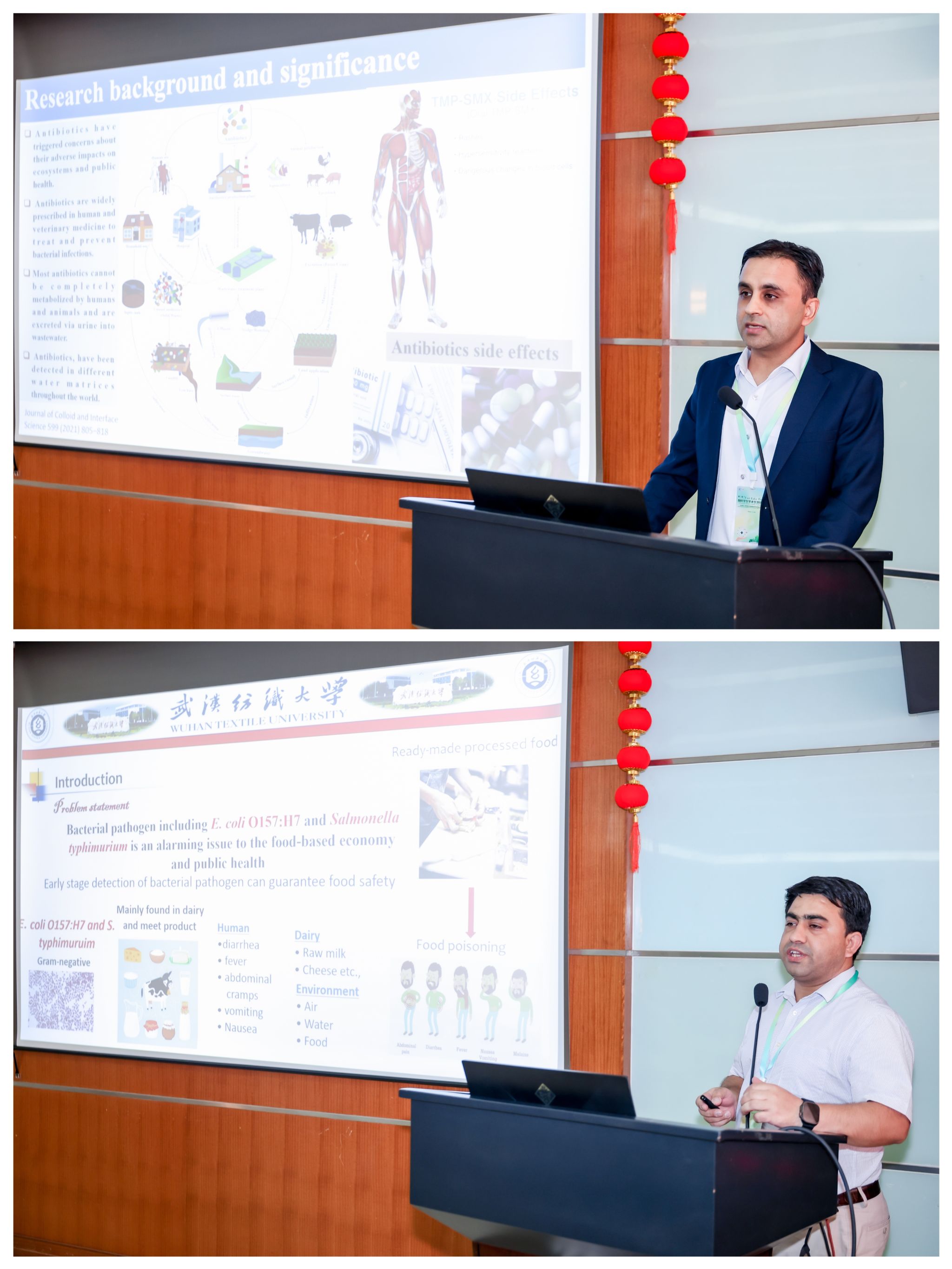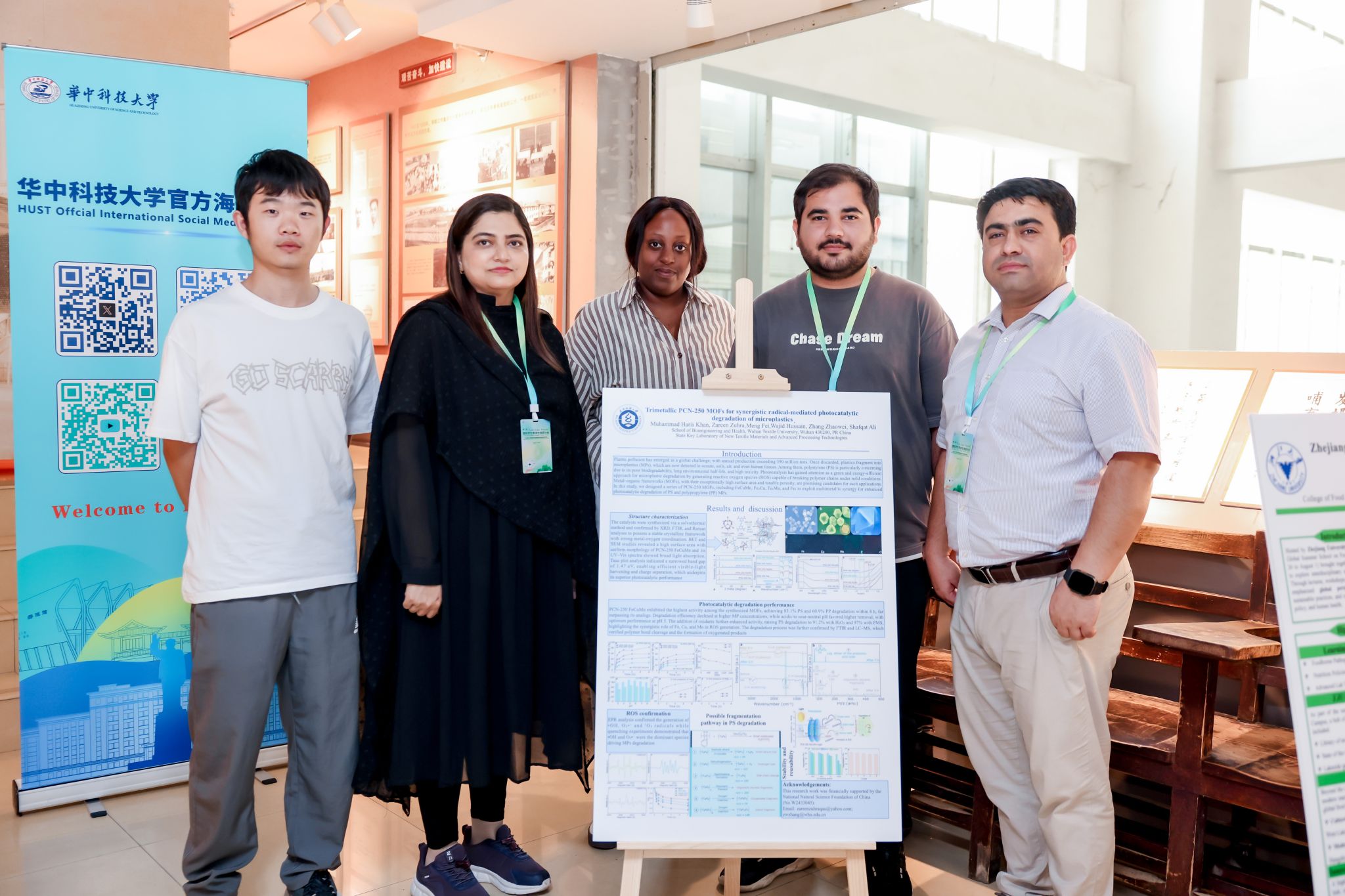 在墙报展示环节,我校留学生KHAN MUHAMMAD HARIS在导师Zareen Zuhra指导下,以“Trimetallic PCN-250 MOFs for synergistic radical-mediated photocatalytic degradation of microplastics”为题,系统呈现了在微塑料污染控制方面的研究成果。在学术交流过程中,我校留学生以专业表述从容回答专家提问并获得一致好评,展现了在科学研究和思辨创新方面的优秀素养。