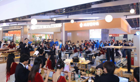 值得一提的是,尽管当晚因天气条件使得原定的乐团演出无法进行,但大学生文化艺术中心器乐部的同学们随机应变,在食堂内以一场别开生面的“快闪”演出完成了他们的精彩亮相,也成为当晚一抹难忘的别样风景。