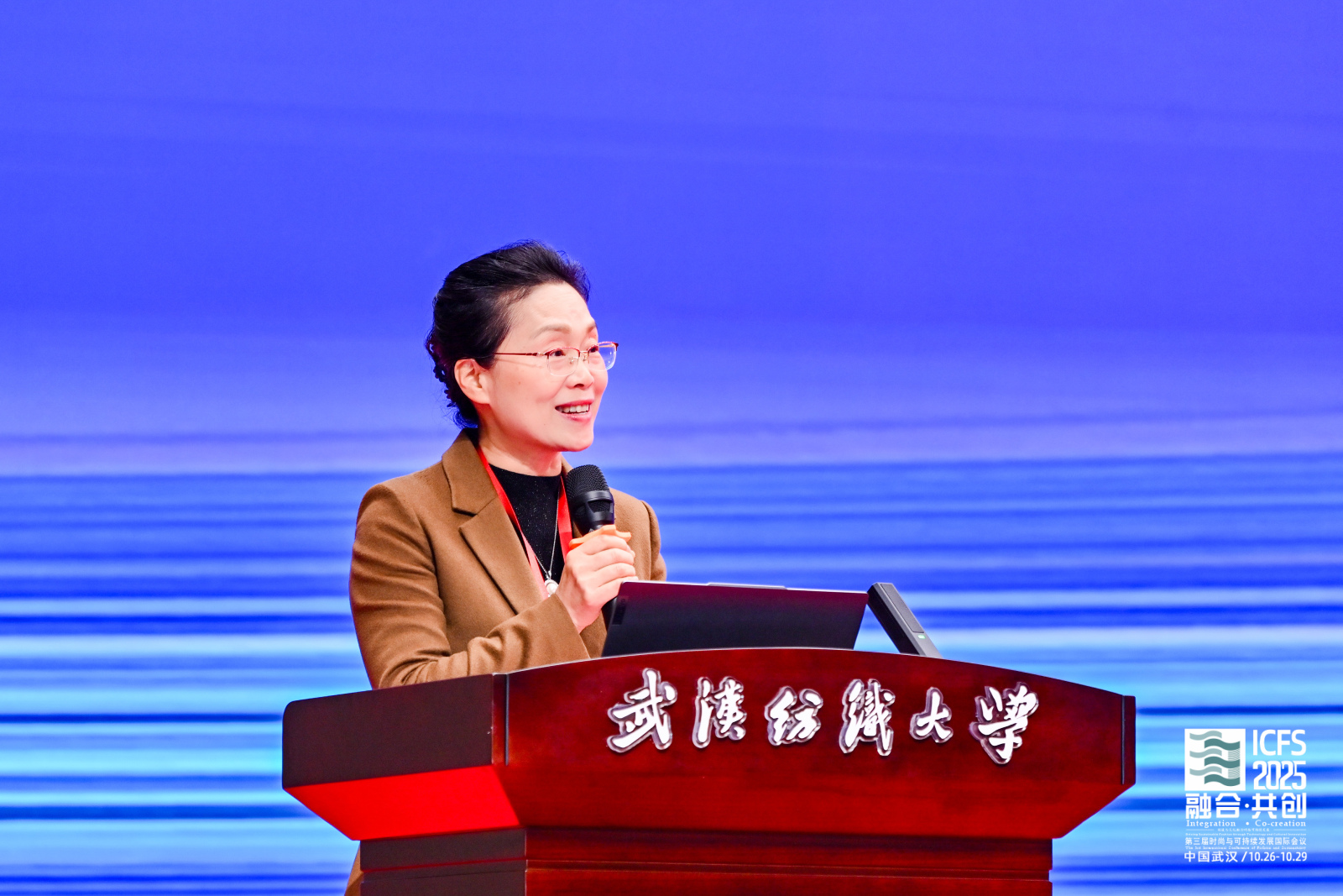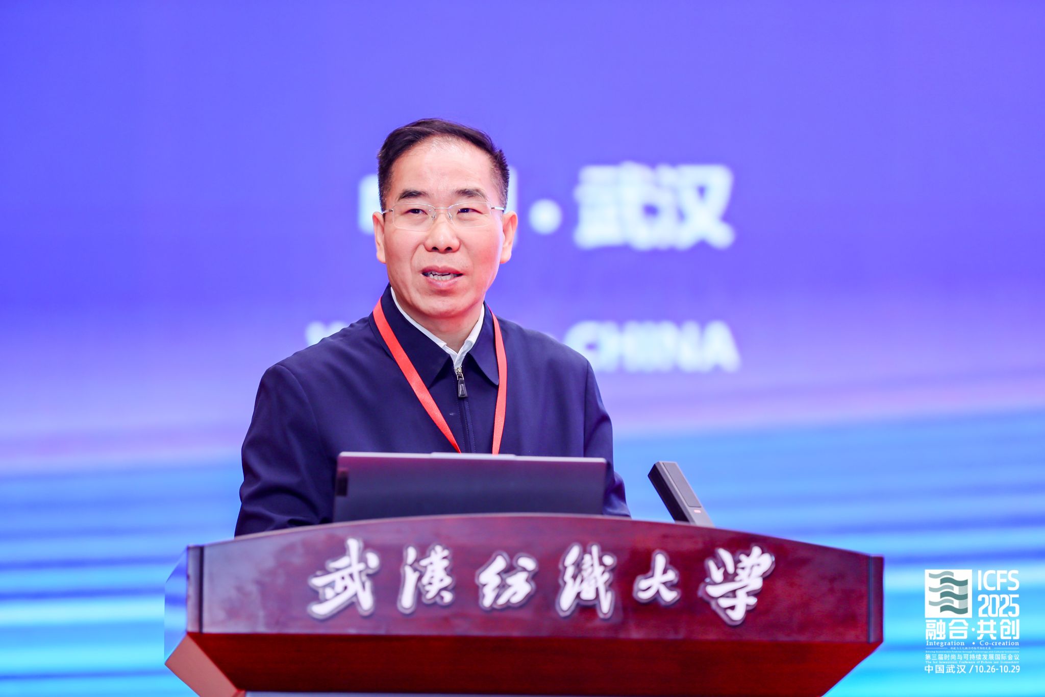武汉纺织大学校长傅欣在开幕式致辞中指出,推动绿色低碳发展是全球共识与高质量发展的关键。本届会议主题精准把握了产业变革核心,将为全球时尚产业注入新智慧。作为国内唯一以“纺织”命名的高校,学校坚持特色发展,纺织学科稳居全球前列,在月面国旗、全国重点实验室等科技创新上取得突破,服装学院深耕智能穿戴等领域,培养的新质人才成果显著。期待通过本次会议搭建高水平平台,汇聚全球智慧,共同开创时尚产业更可持续的未来。