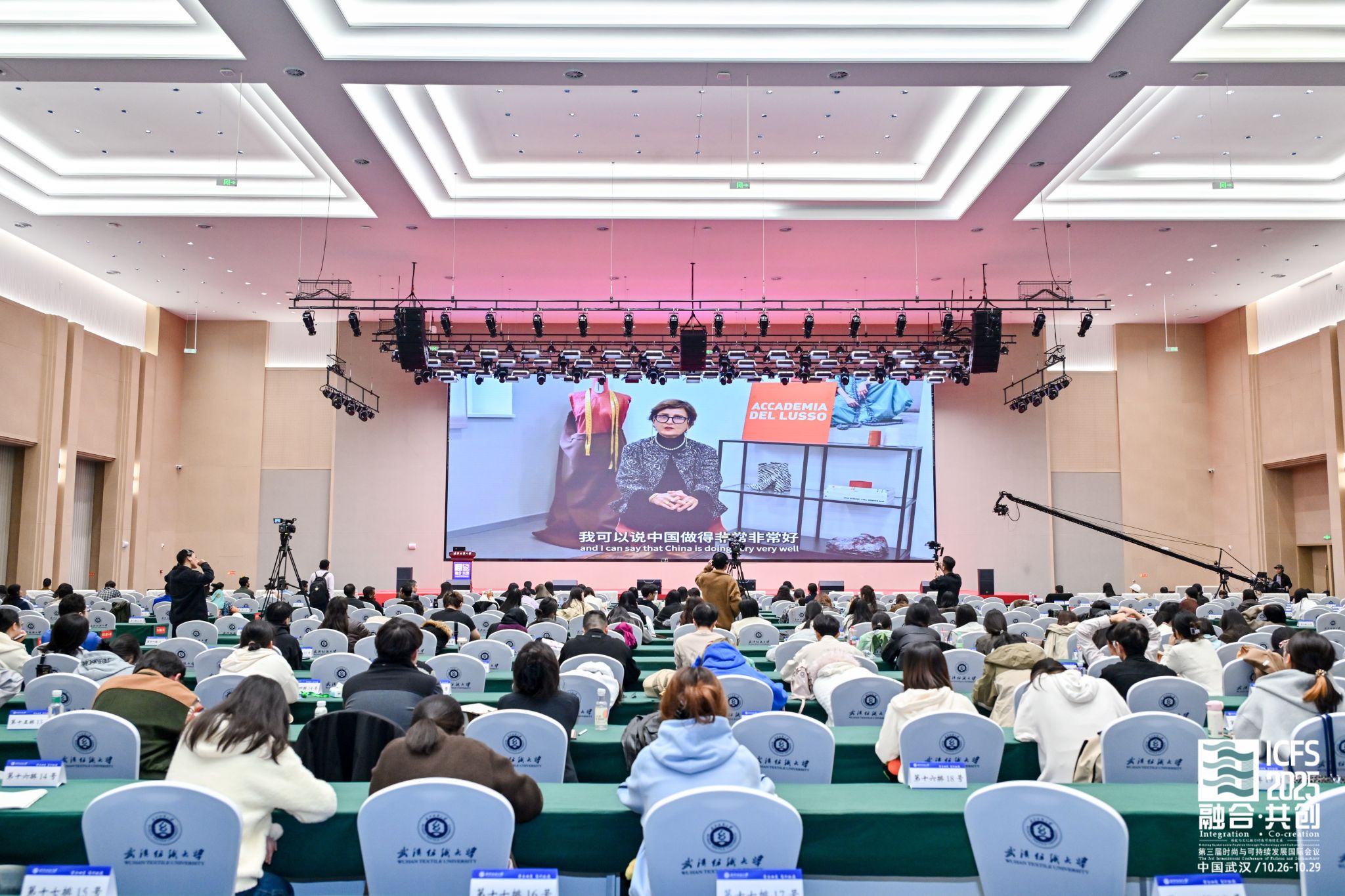 10月27日上午,以“融合·共创:科技与文化助力时尚可持续发展”为主题的第三届时尚与可持续发展国际会议在武汉纺织大学建全会堂盛大开幕。本届国际会议汇聚了来自中国、意大利、英国、日本、希腊、孟加拉国、葡萄牙等国的十余位顶尖学者与产业先锋,共同探讨科技如何重塑设计、生产与教育。主旨论坛围绕“材料创新”“智能穿戴”“数字孪生”“可持续设计”及“跨文化教育”等核心议题,分享前沿洞察,勾勒未来时尚新图景。此次国际会议开幕式由武汉纺织大学服装学院院长陶辉主持,600余人参加开幕式和主旨论坛。