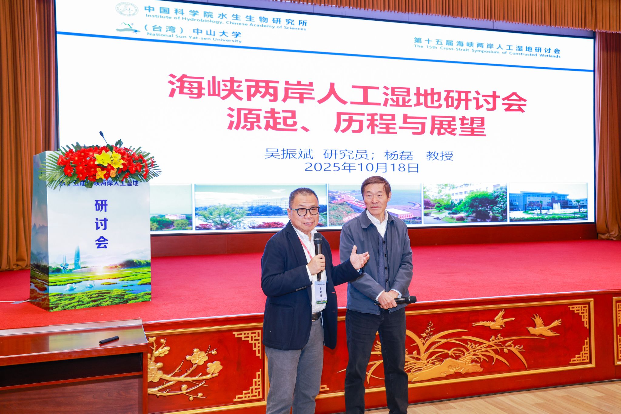 海峡两岸人工湿地研讨会始于2008年,由吴振斌教授、杨磊教授等发起组织,已分别在武汉、高雄、海口、台北、宜昌、杭州、嘉义、银川、深港澳、桂林、台中和济南等地成功举办了十五届,参会人数约4800余人次,其中两院院士等资深专家50余位,发表论文750余篇,报告600余场。研讨会为来自两岸四地的湿地领域专家学者与工程技术管理人员构建了一个重要平台,助力各方在理论探索、技术研发与工程应用等方面实现成果共享与深度合作,有效推动了湿地保护理念的普及、生态工程技术的进步以及生态修复产业的发展。
