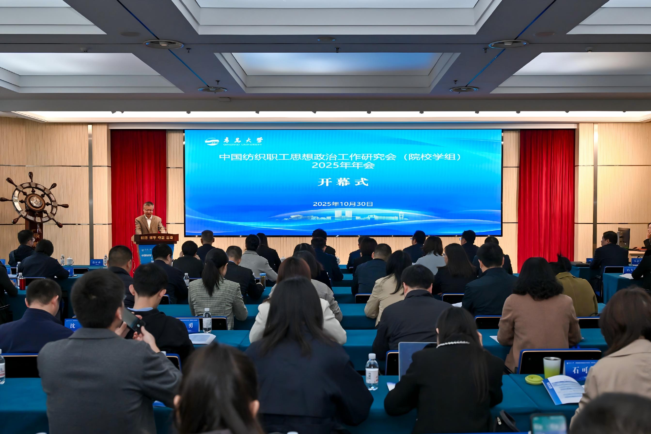 10月30日,中国纺织职工思想政治工作研究会(院校学组)2025年年会在青岛大学举行。中国纺织职工思想政治工作研究会秘书长郑国峰,中国纺织职工思想政治工作研究会(院校学组)会长、北京服装学院党委副书记李伟书出席开幕式并讲话,全国17所纺织高校近百名代表参加会议,我校党委副书记、副校长罗锦银,党委宣传部、学工部、研工部、校团委负责人参会。