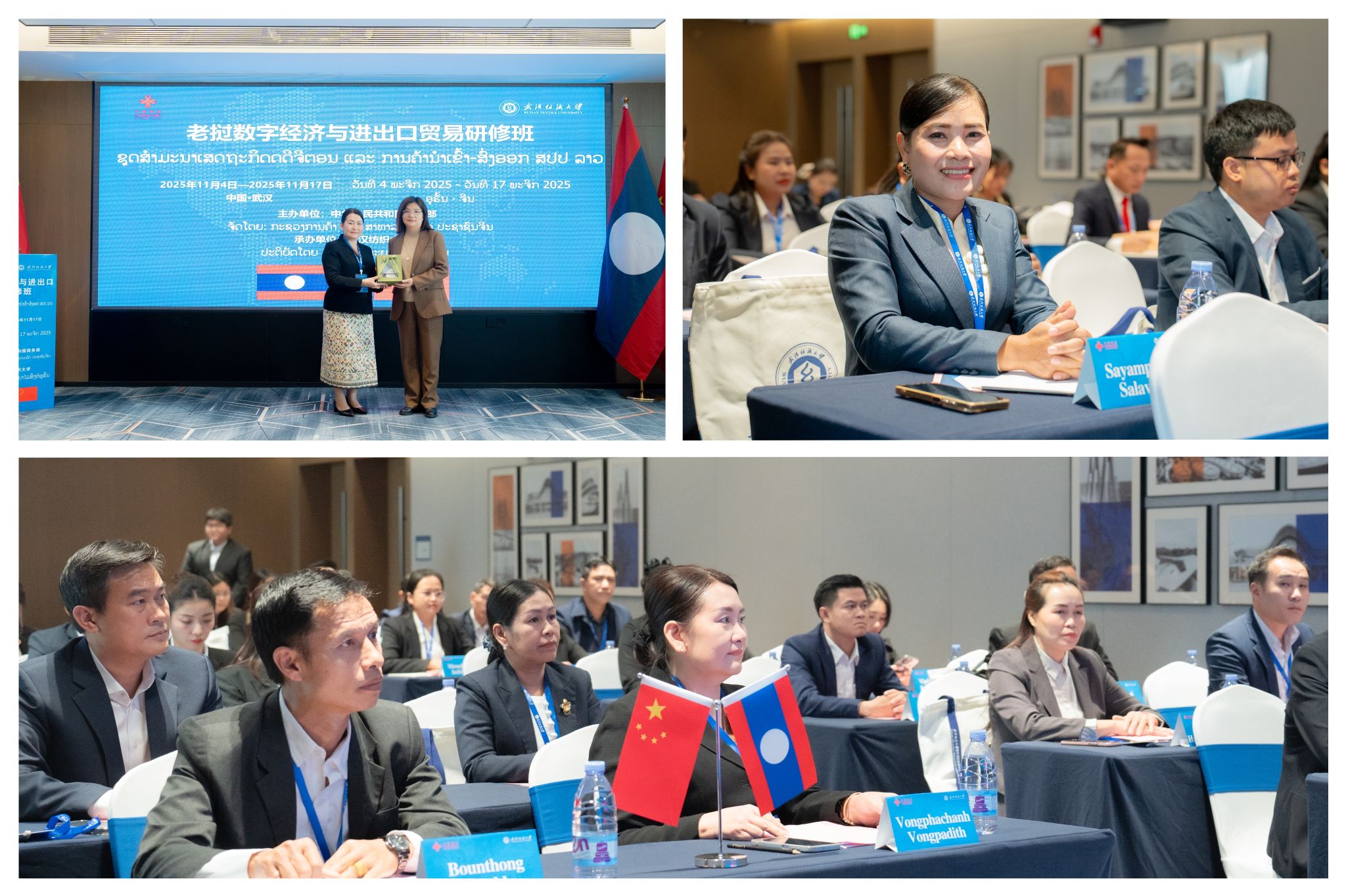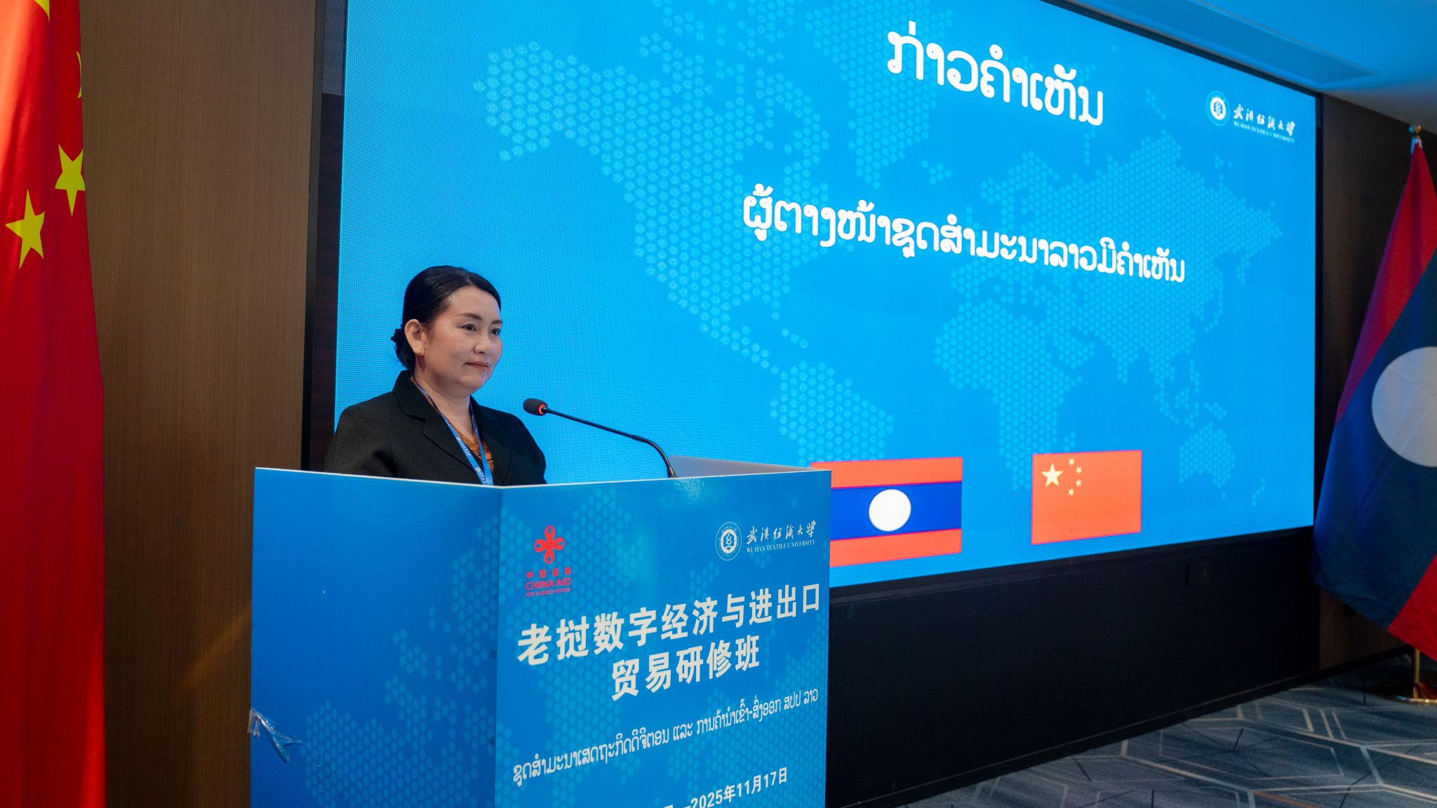 援外项目管理中心主任计臣在开班仪式上致辞。他指出,中国与老挝山水相连、文化相通,是牢不可破的友好邻邦。近年来,数字经济合作日益成为中老务实合作的新亮点。他表示,本次研修班将依托武汉纺织大学在纺织跨境电商和数字化供应链管理领域的学科优势,通过分享“中国经验”和“纺大智慧”推动中老合作迈向新阶段。