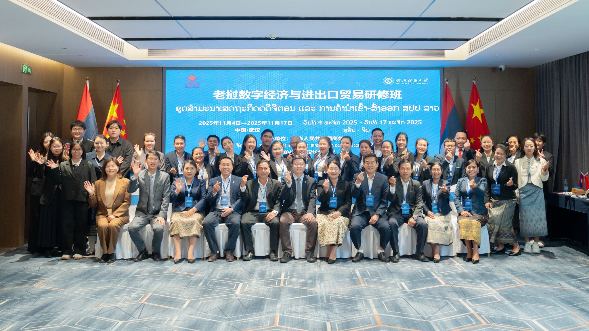 11月4日下午,由中国商务部主办,学校承办的老挝数字经济与进出口贸易研修班在汉开幕。来自老挝工贸部、科技与信息部、财政部的30名学员与国际处、援外项目管理中心负责人共同出席开班仪式。