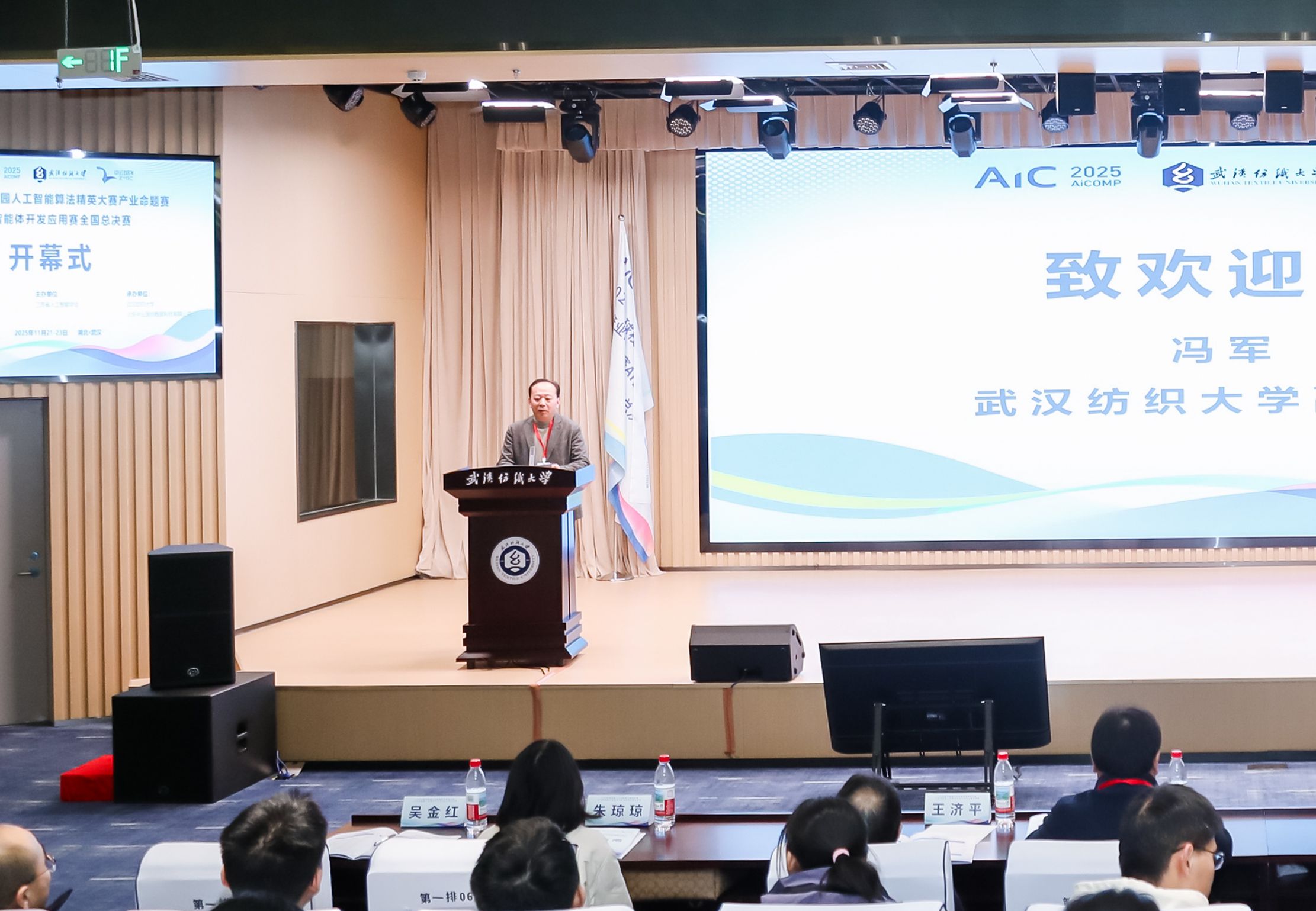 11月22日上午8时,在庄严的国歌声中,参会领导、裁判员、指导教师及参赛选手全体起立,共同见证大赛的启动。武汉纺织大学副校长冯军致欢迎辞,对远道而来的各界代表表示热烈的欢迎,简要介绍了学校整体概况,充分肯定了此次大赛对于培养新质生产力人才和广聚校企资源的积极作用,并强调大赛对推动人工智能教育创新、培养复合型人才的重要意义。