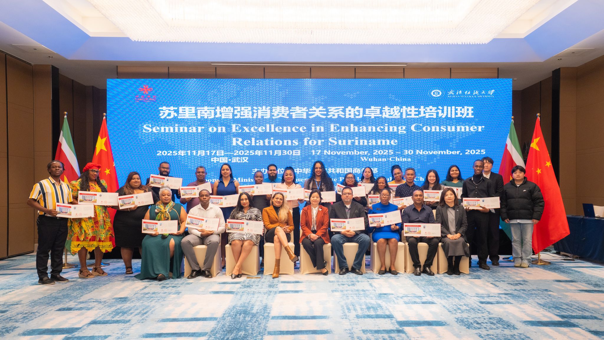 11月30日下午,由商务部主办、学校承办的“苏里南增强消费者关系的卓越性培训班”在汉举行结业仪式。来自苏里南经济事务、创业与技术创新部的25名学员出席结业仪式。