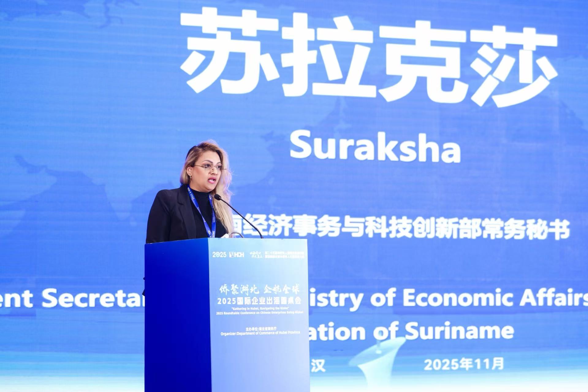 学员们受邀参加"侨聚湖北,企航全球"国际企业出海圆桌会。苏里南经济事务与科技创新部常务秘书苏拉克莎作为重要嘉宾发言。该活动为苏里南学员提供了与湖北企业、侨界代表对话交流的机会,拓展了双方在经贸领域的合作空间。