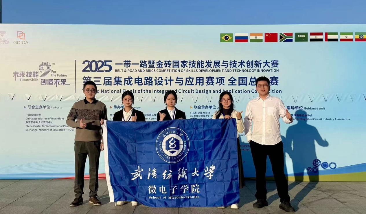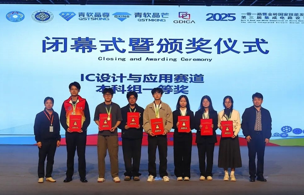 11月28日至29日,2025年“一带一路暨金砖国家技能发展与技术创新大赛”第三届集成电路设计与应用赛项全国总决赛在广州举行,我校微电子学院三支参赛队伍入围总决赛,并最终斩获IC设计与应用本科组一等奖一项、三等奖一项、优秀奖一项。