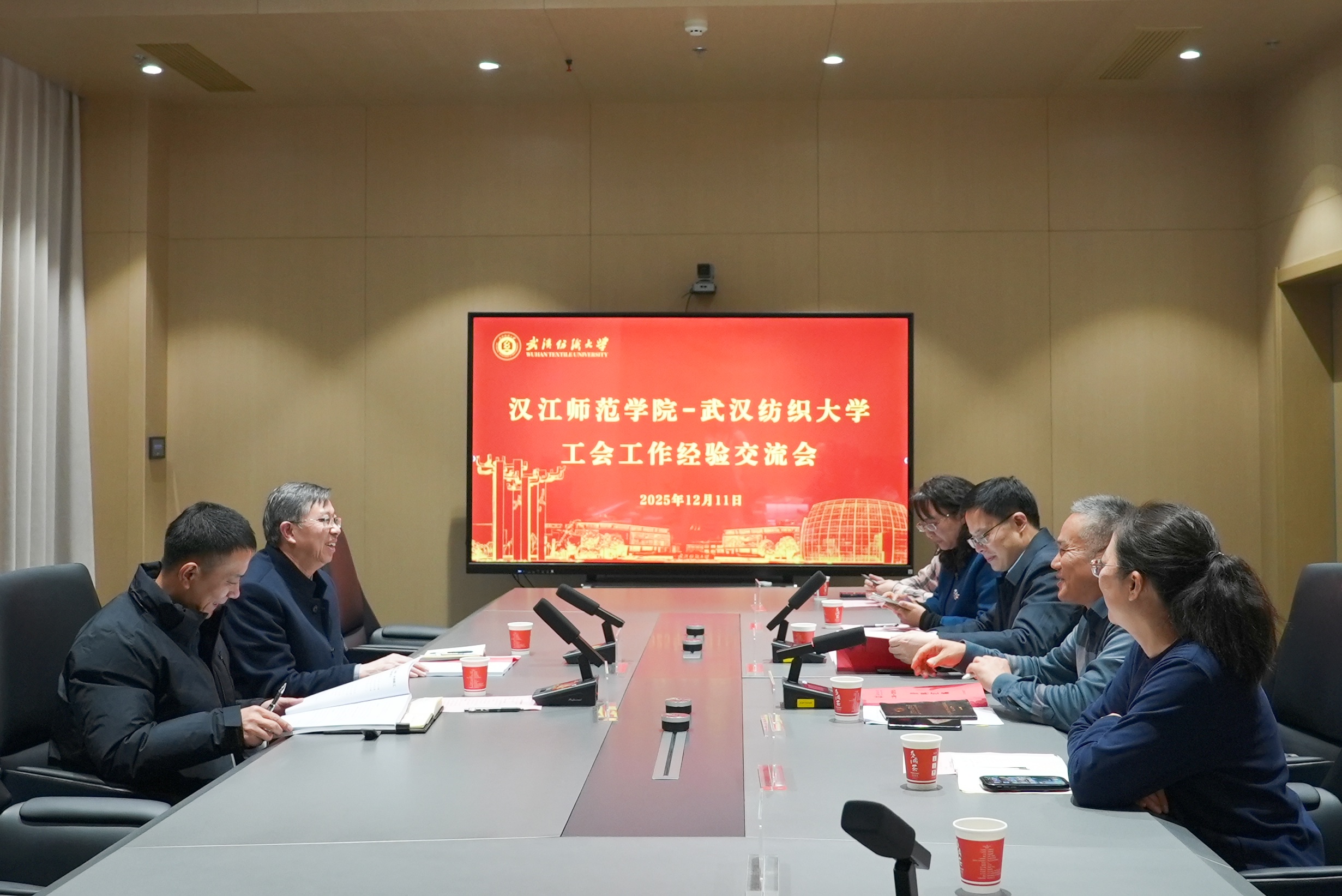 陈俊对我校工会的热情接待表示衷心感谢,他简要介绍了汉江师范学院工会工作与当前面临的新形势、新任务,希望通过此次调研能借鉴武汉纺织大学工会工作的先进经验,进一步提升汉江师范学院工会工作的规范化与科学化水平。