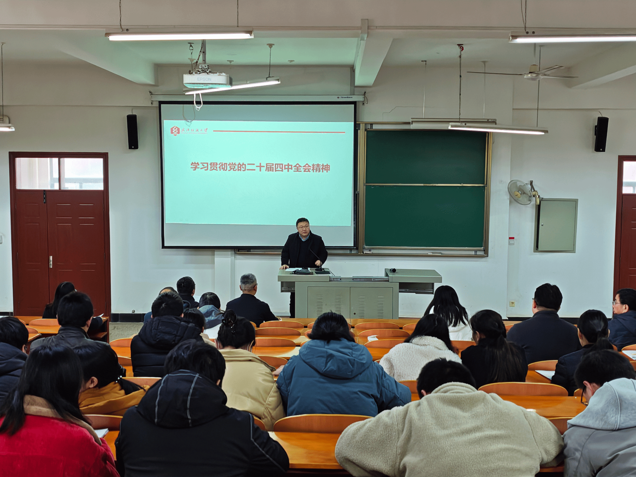 (通讯员:游坜民)12月30日下午,校党委常委、副校长冯军到管理学院开展党的二十届四中全会精神专题宣讲,管理学院全体教职工参加。宣讲会由管理学院党委书记赵立彬主持。