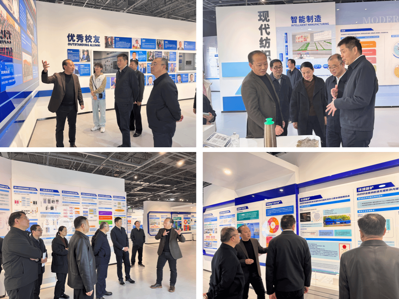 仪式开始前,来访人员一行在冯军的陪同下,参观了纺织科技馆。一行人纷纷表示在精彩的讲解下,对纺织发展史、学校历史以及目前在纺织产业所取得的成效有了更加深入的认识。
