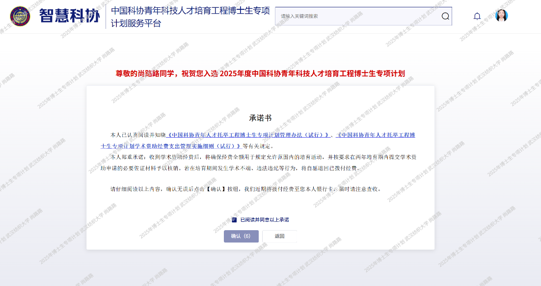 近日,中国科协正式公布2025年度青年科技人才培育工程博士生专项计划入选名单,武汉纺织大学纺织学院2025级博士生尚路路成功入选。