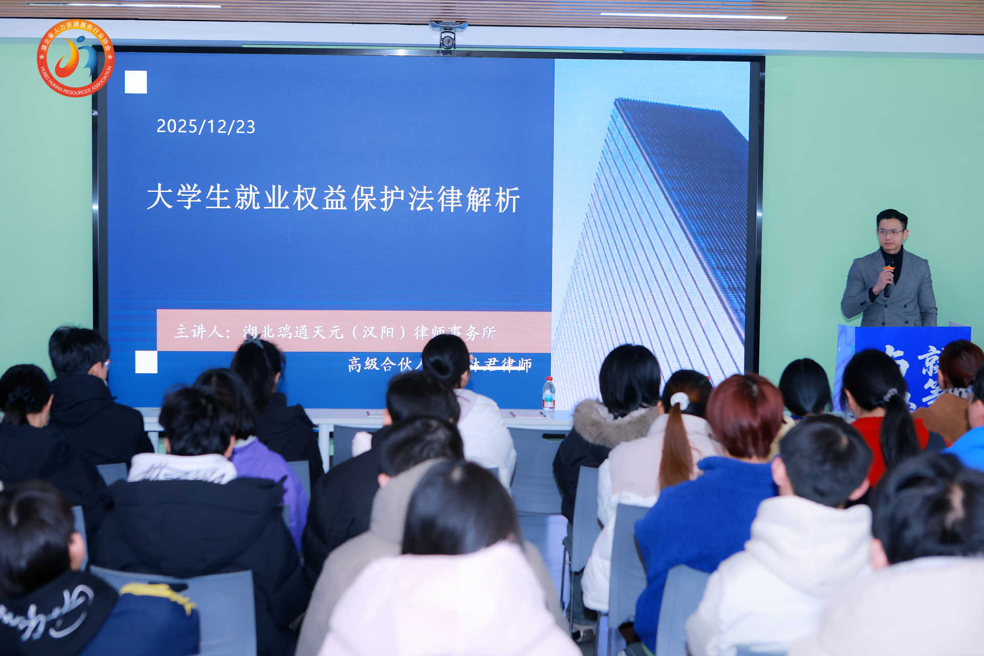 招聘会同期开展“鄂荟微讲堂”就业指导活动,聚焦求职核心需求设置两大主题讲座。中铁十一局集团第四工程有限公司工会副主席朱虹围绕新发展格局下的就业形势,通过真实案例拆解简历制作要点与面试实战技巧,帮助学子打造求职优势;湖北瑞通天元(汉阳)律师事务所谢林君律师开展《劳动权益保护》专题分享,详解求职过程中劳动合同签订、权益维护等关键问题,既为企业合规招聘赋能,也为毕业生顺利启航职场筑牢安全屏障。