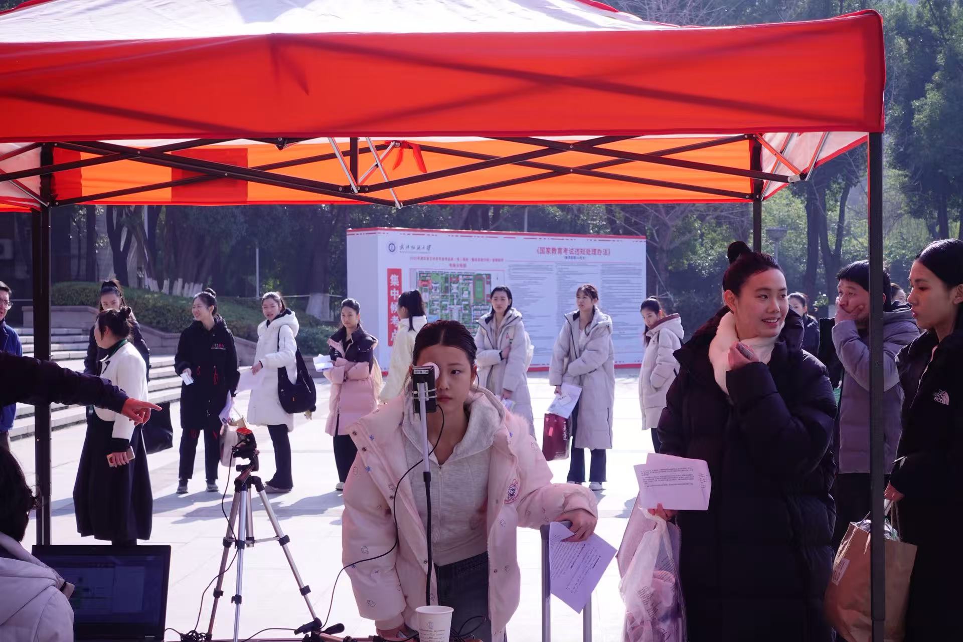 长期以来,学校招生领导小组高度重视统考考点组考工作,严格落实教育部和湖北省教育考试院有关政策和文件要求,规范管理、细致实施,重点就组织报名、考生身份核验、考试部署、评委培训、后勤保障等各环节进行了周密安排。今年考试过程中继续实行“入口安检门+人工安检”的双重防护机制,严禁考生携带手机等电子设备进入考场,通过虹膜识别验证技术对考生信息进行严格核对,充分保障考场秩序和考生权益,切实维护考试的公平公正,确保考试安全平稳。