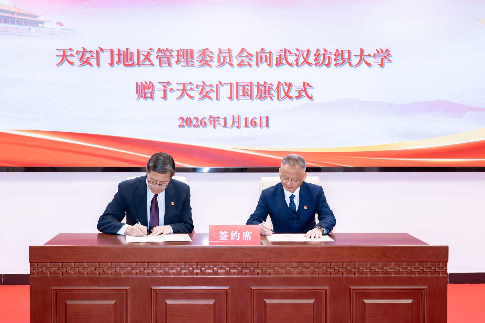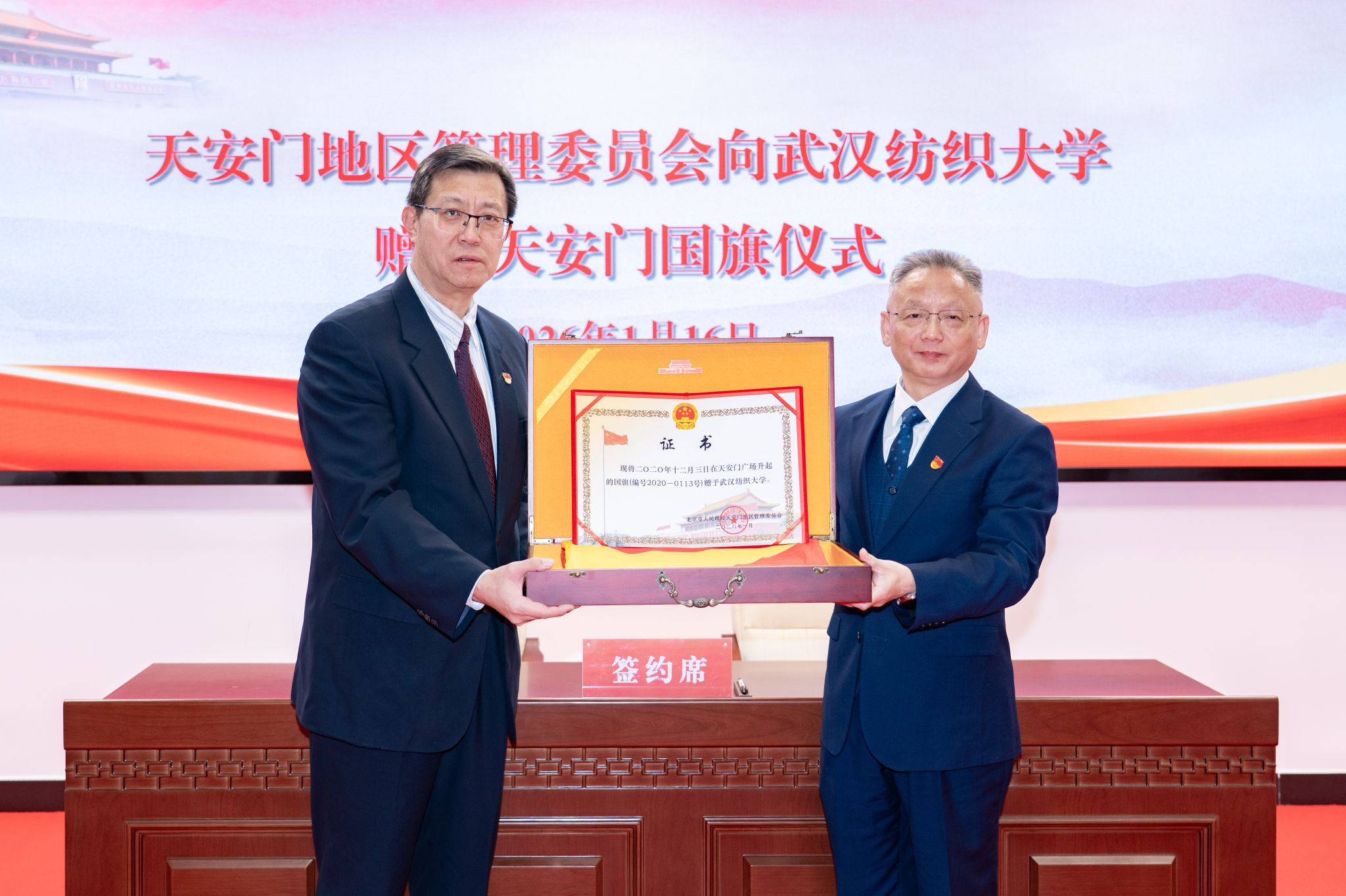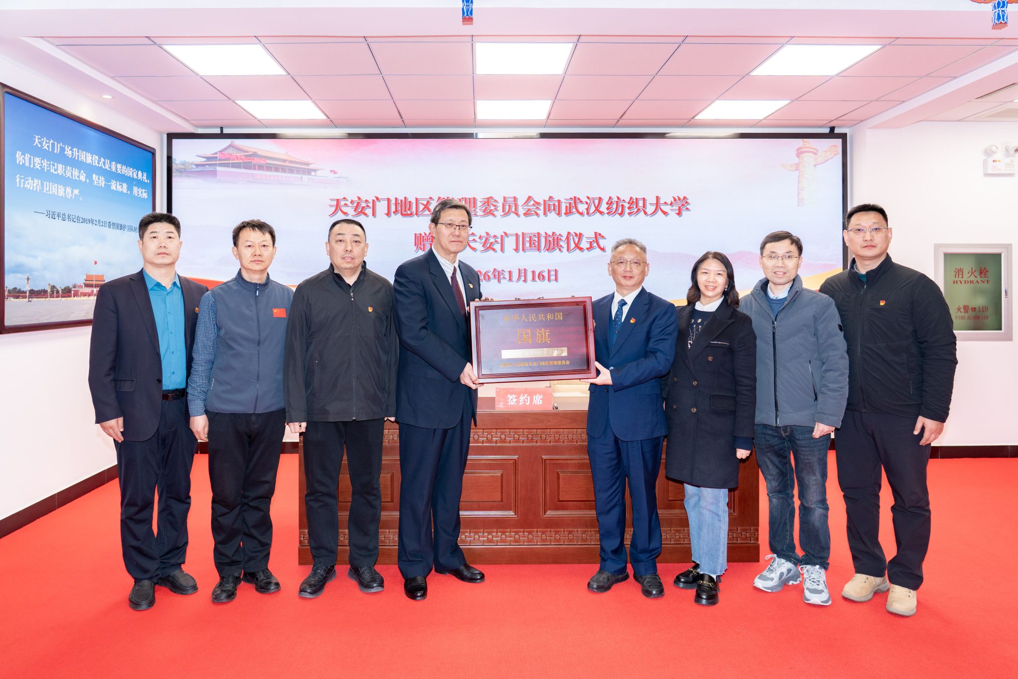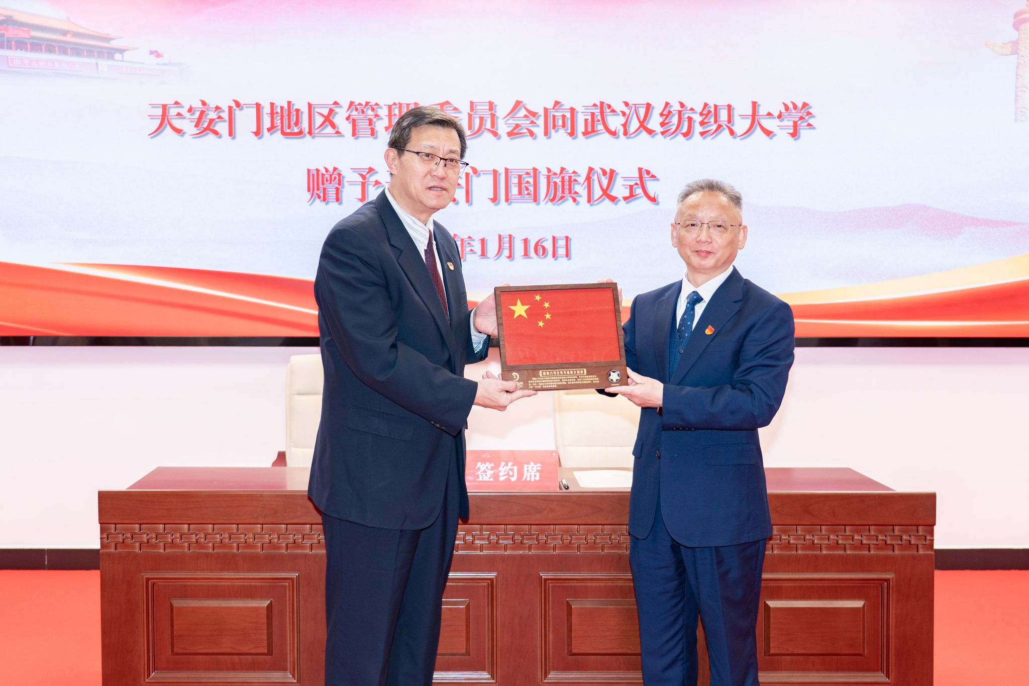 1月16日,北京市人民政府天安门地区管理委员会向武汉纺织大学赠予天安门国旗仪式在天安门地区管理委员会国旗教育馆举行。