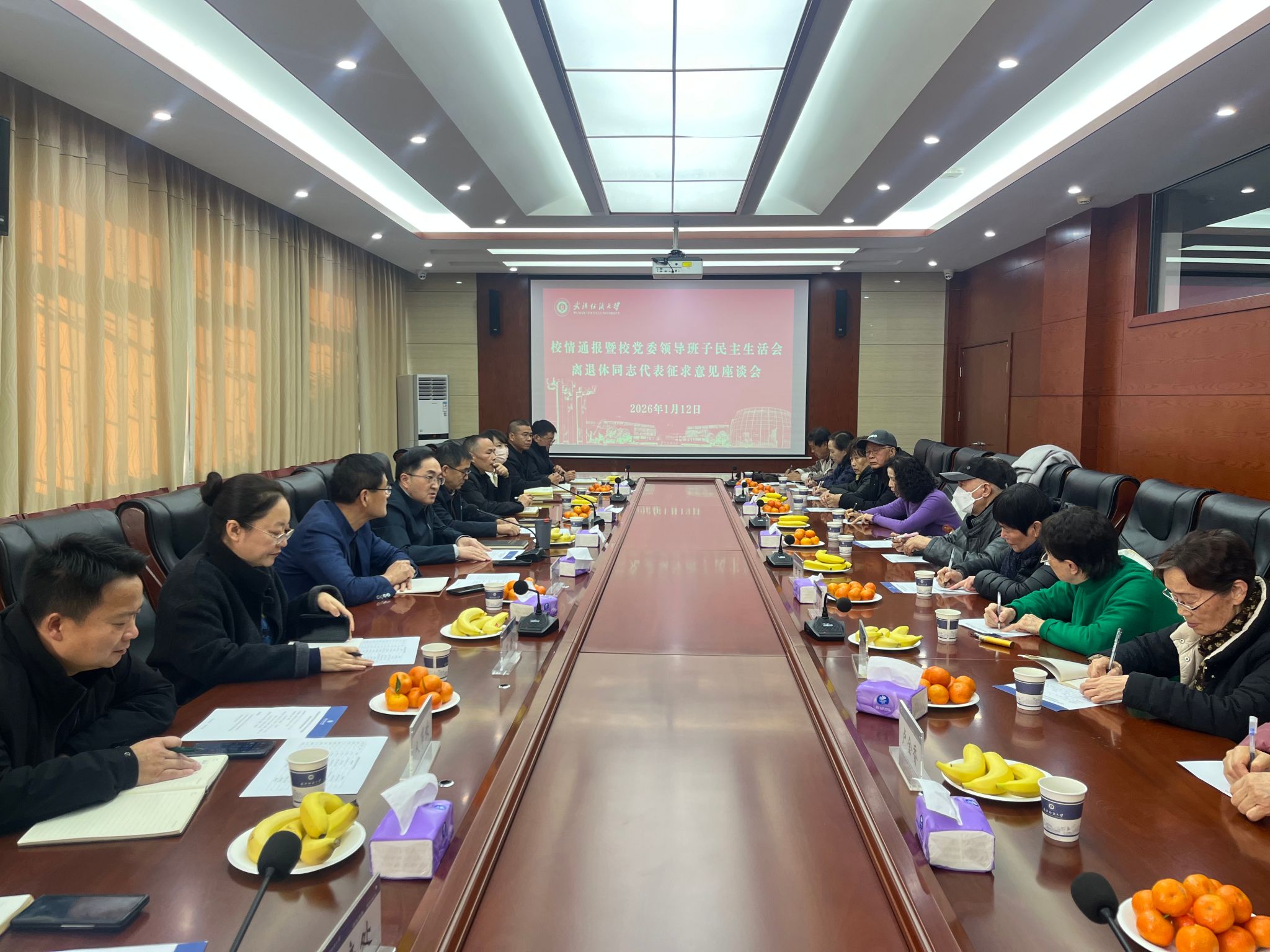 1月12日下午,学校在南湖校区一号会议室召开年度校情通报暨党委领导班子民主生活会离退休教职工代表征求意见座谈会。校长傅欣,校党委常委、副校长姜明华出席座谈会。会议由姜明华主持。