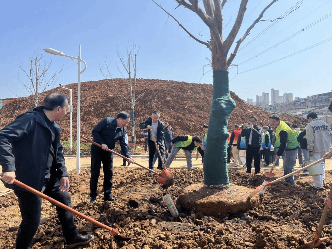 春风拂绿,万象更新,又是一年植树添绿好时节。3月11日上午,后勤处联合资环学院在阳光校区研究生公寓南侧绿地携手举办以“共绘绿美校园,同筑生态未来”为主题的第44届植树节活动,校长傅欣、副校长冯军、后勤处班子成员、资环学院师生代表共计120余人齐聚现场,共同播撒绿色希望,践行生态责任。