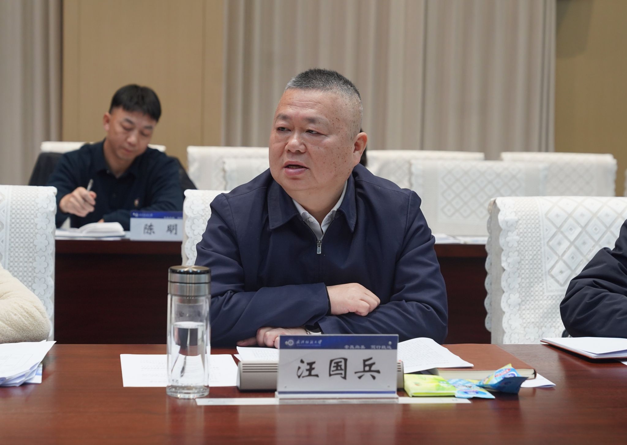 汪国兵对我校的热情接待致以诚挚谢意,并对学校在科技创新、人才培养等方面取得的突出成效予以高度评价。他指出,麻城红色资源富集、生态优势彰显、产业基础扎实,正处于全面推进高质量发展的关键时期,对高端科技支撑和专业人才保障的需求日益迫切。展望未来,他希望双方建立健全常态化对接机制,以科技赋能为牵引,推动我校嫦娥系列国旗等航天技术成果在麻城新材料、纺织服装等重点产业转化应用,切实助力产业提质增效;并表示将聚焦重点领域,持续完善合作机制,推动干部互派、人才共育、成果转化等各项工作走深走实,加快形成优势互补、互利共赢的校地协同发展新格局。