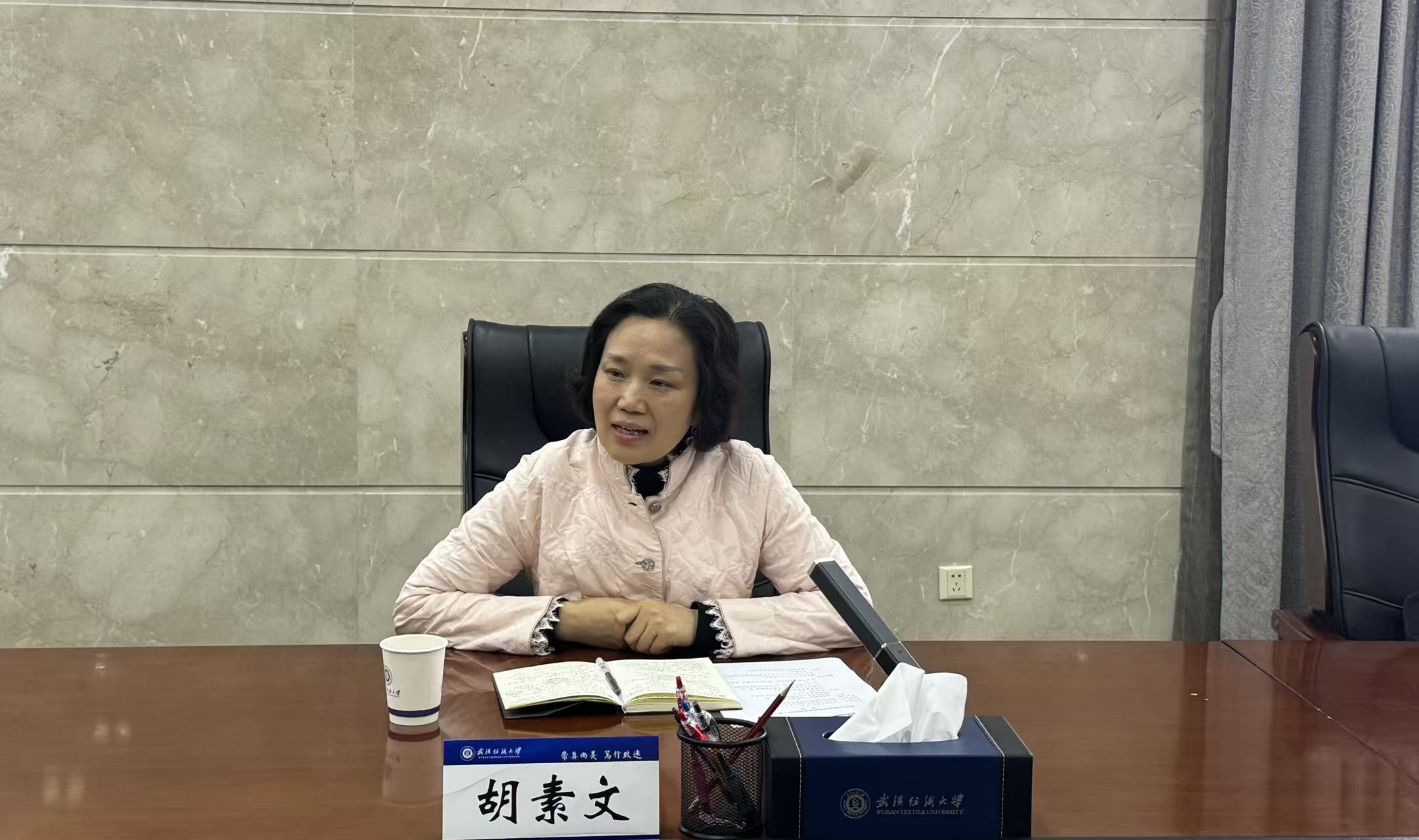 胡素文对学校近年来的发展成就和统战工作开展情况给予高度肯定。她表示,学校统战工作政治站位高、工作机制实、特色亮点多,将统战工作与立德树人、服务国家战略、支撑区域发展深度融合,尤其在党外知识分子思想引领、平台搭建、作用发挥等方面成效显著。她指出,市委统战部将持续加强与学校的沟通对接,积极回应学校诉求,为学校党外人才成长成才、参政议政提供更多支持,推动校地统战工作协同发展、同向发力。同时,她希望学校继续发挥学科和人才优势,进一步深化思想政治引领,建强党外代表人士队伍,引导广大党外知识分子立足岗位、建言献策,为武汉高质量发展贡献纺大智慧和力量。