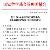 近日,从国家留学基金管理委员会传来喜讯,我校申报的“2026年中国政府奖学金国际暑期学校项目、“感知中国”中国政府奖学金生社会实践与文化体验活动项目”均顺利获批。其中,中国政府奖学金国际暑期学校项目为我校首次斩获,两项项目的成功获批,为学校国际化办学事业再添重磅成果,标志着我校国际化办学水平与综合实力进入新阶段。