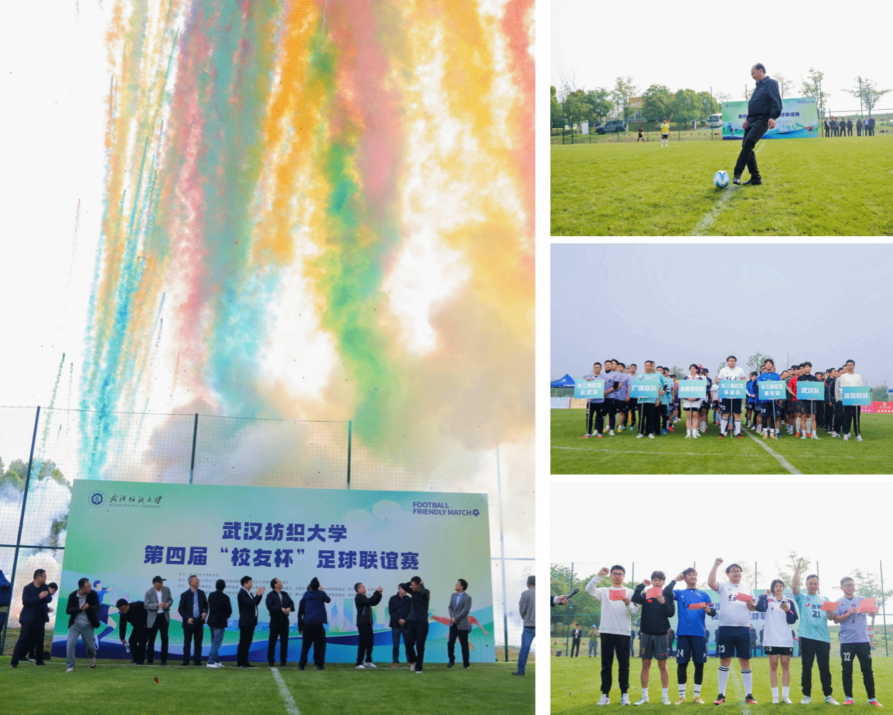 伴随着武汉纺织大学校友足球梦之队队歌和彩色烟幕,为期一天的激烈角逐正式开启。本届赛事采取八人制赛制,设竞技组与娱乐组双赛道,既有紧张激烈的竞技对抗,也有轻松欢快的友谊交流。赛场上,校友们身姿矫健、配合默契,精准传球、犀利突破、精彩扑救轮番上演;赛场边,各校友联谊会啦啦队呐喊助威、激情互动,将现场气氛不断推向高潮。