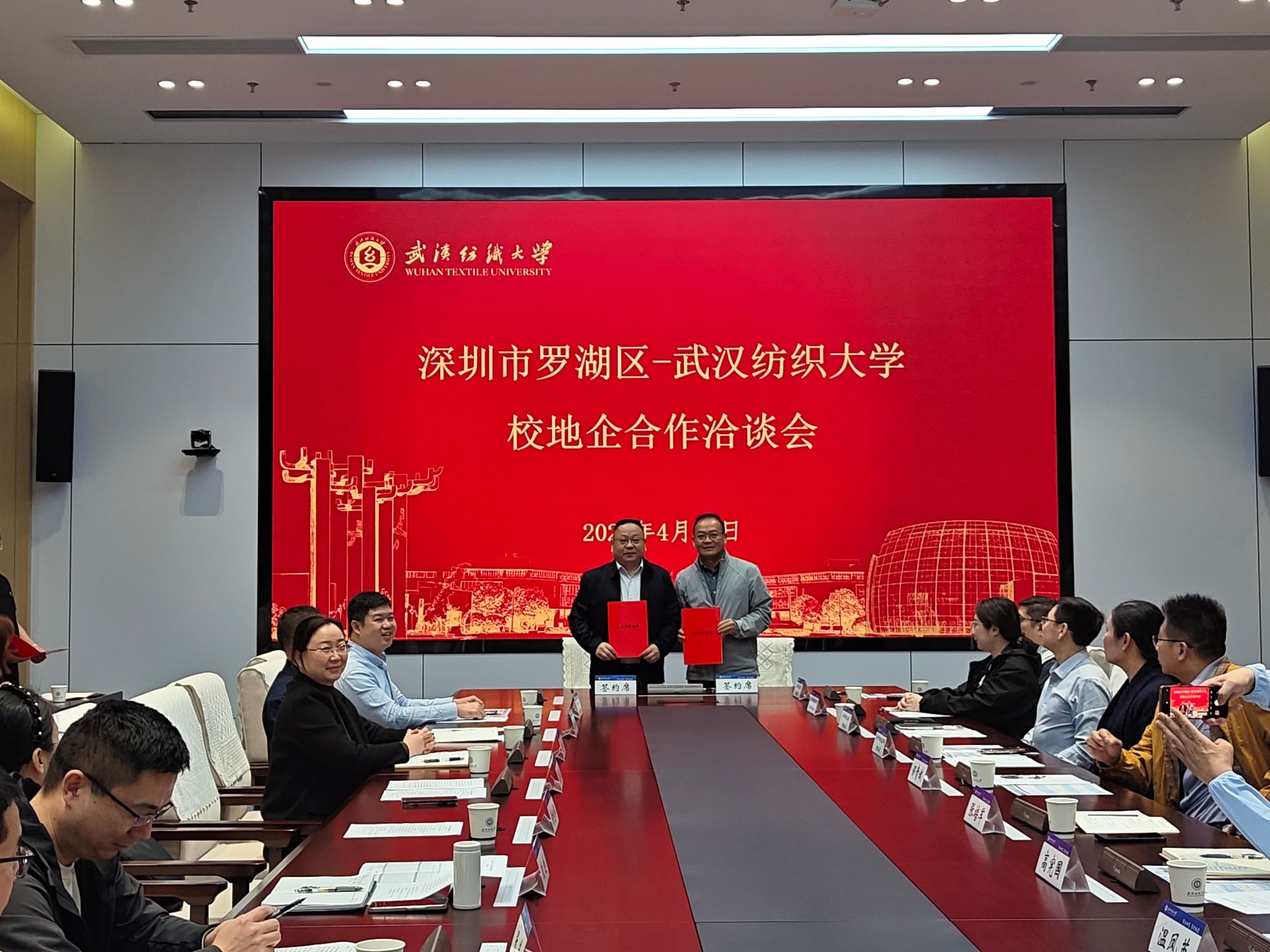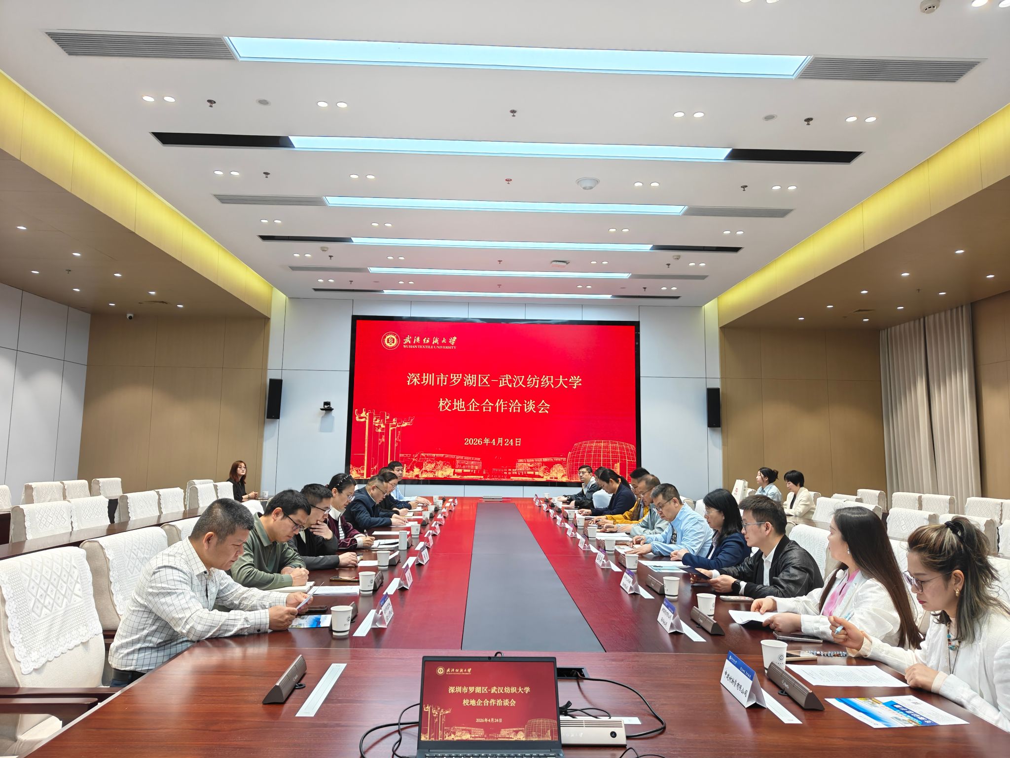 会前,双方赴学校纺织科技馆参观,也观看了罗湖区宣传视频,进一步加深了双方的认识和了解。