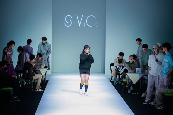 在整场秀的编排上,也给大家耳目一新的视觉冲击。观众进场时,男模已经坐在T台边的咖啡桌上玩儿着手机,最大限度地打破秀场落伍的仪式感。发布会谢幕时,模特又回到了咖啡桌前,悠然自在。观众几乎都没敢走,以为秀还没有结束。设计师以这种反转的形式告诉大家,反转的人生才有意思,再华丽的大秀都要回归生活,SIVICO这一季,不会结束。