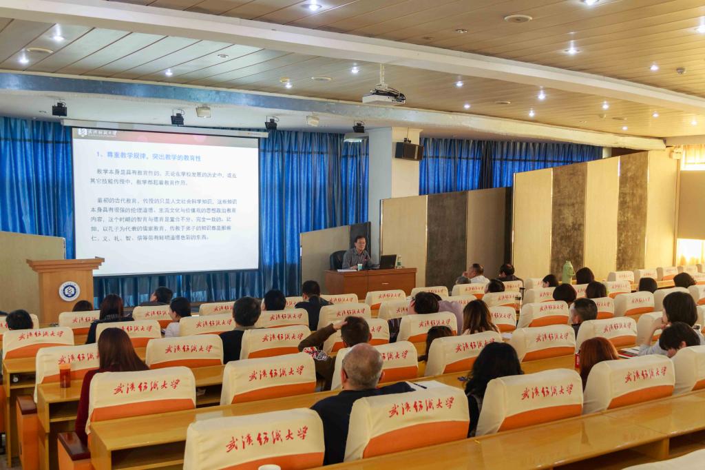 4月27日下午,在东湖校区行政楼8楼学术报告厅,校党委副书记刘在洲做了题为《中央与总书记的号召和我们的行动——学习习近平总书记在全国高校思想政治工作会议上的讲话和会议精神的体会与打算》专题辅导报告。外经贸学院、高职和继续教育学院、外经贸学院藏龙岛校区的全体教职工聆听了报告,报告由外经贸学院党委书记龙泽弘主持。