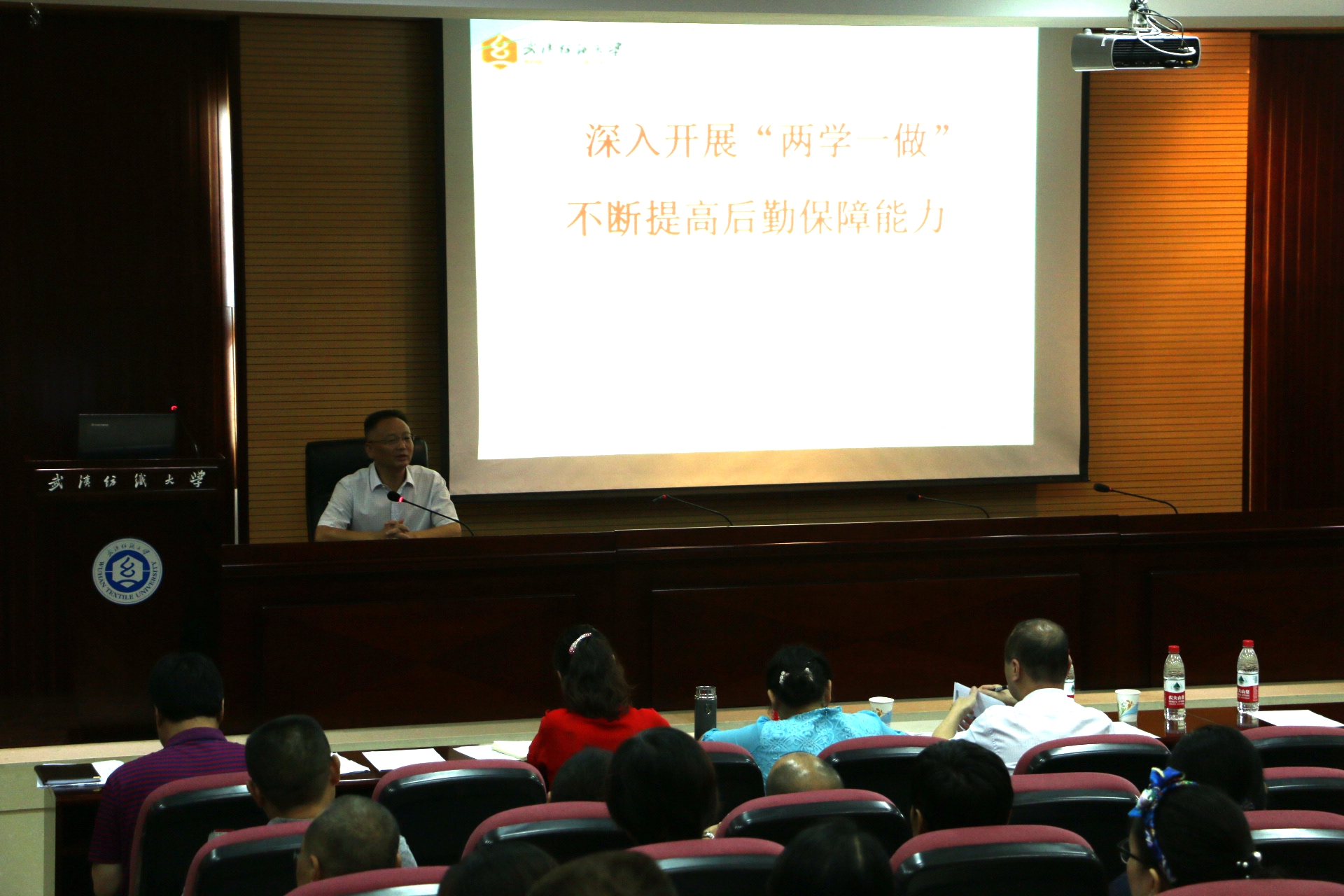 罗锦银在讲话中指出,后勤职工在服务保障工作中付出了艰辛的劳动,暑假工作得到了学校的高度认可。对后勤集团领导班子提出严格要求:要求领导带头,严格要求自已和班子成员,要富有责任和感情地努力工作,深入开展“两学一做”,把集团的氛围、师生的满意时间牢记在心上,并体现在行动中。同时对后勤服务工作提出三点指导性意见:一是安全,做好生产安全、经济安全、政治安全,把安全作为工作的重中之重,将安全理念贯穿于生产服务全过程;二是质量,正确认识新常态下的后勤服务形式和需求,精准有效地提供服务,不断提高后勤服务质量;三是幸福,勇于担当,在微笑中服务、在微笑中工作。最后罗校长就后勤集团迎新工作做专门部署,指出:新生入校接触的第一见证者就是后勤服务,迎新保障人员要象对待自已孩子和兄弟一样对待新生,做好迎新服务保障工作。
