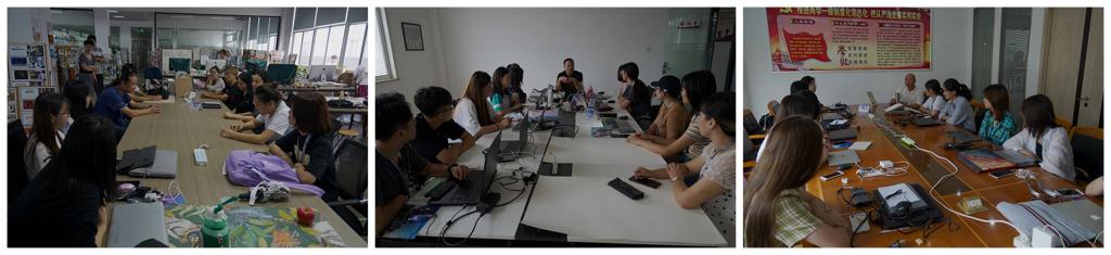 24日上午,导师与大师工作坊学员见面会在明远公司西大会议室召开,工作坊四位导师天津美术学院染织系主任朱医乐、西安工程大学服装艺术设计学院产品设计系主任王教庆、武汉纺织大学艺术学院工艺美术系主任高波、明远公司驻澳大利亚办事处室内纺织品设计总监Simona Sparano分别就本次工作坊设计内容,设计要求,学术讲座,作业等进行布置和说明,通过与工作坊学员互动了解不同年级同学的专业掌握程度,并听取大家对于工作坊安排的意见和期许。