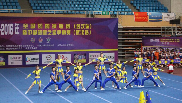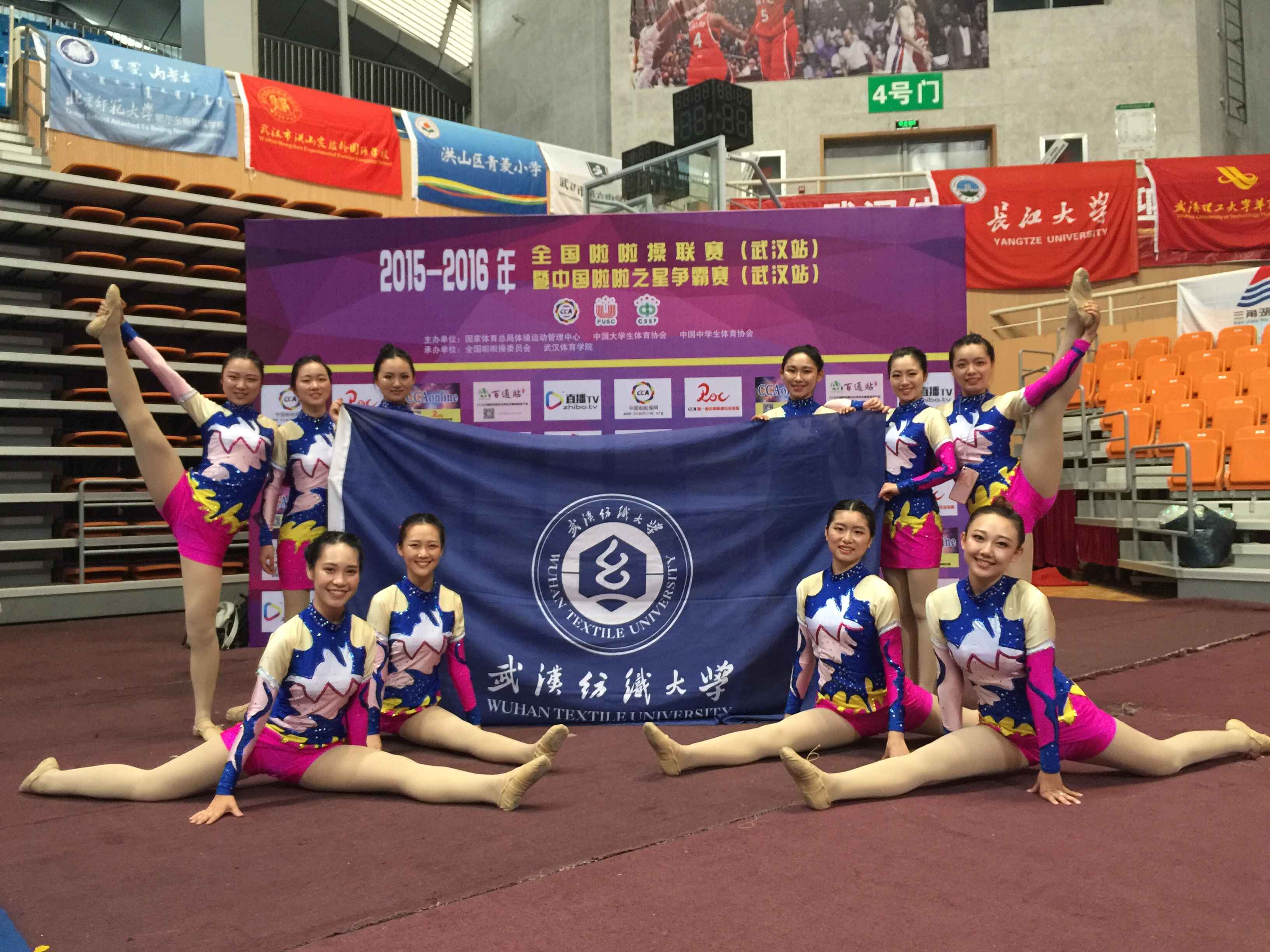 2015-2016年全国啦啦操联赛(武汉站)暨中国啦啦之星争霸赛于日前在汉举行,由我校大学生艺术团选送的dance fairy啦啦队和dream weaver啦啦队在本次大赛中,取得大学乙组爵士规定动作和大学乙组技巧1级规定动作两项冠军,获全国总决赛入场券。