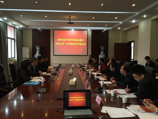 近日,宁夏中银绒业股份有限公司总工程师李发洲率人力资源部、研发部主管及职业技能培训学校校长一行来校考察交流,副校长黄运平接待了企业一行,各二级学院负责人、专家学者参加了产学研洽谈会,会议由科技处处长李相朋主持。