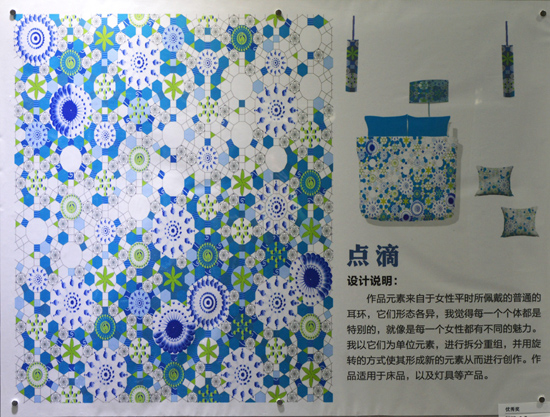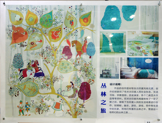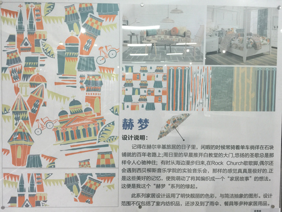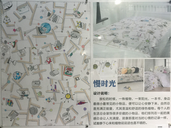 本次展览是“海宁家纺杯”2015年中国国际家用纺织品创意设计大赛全国巡回展的第四站,通过巡回展为全国家纺类青年设计师提供学习和交流的平台,同时也为家纺类企业发掘优秀的设计人才。现将部分获奖作品展示如下:
