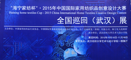 10月18日上午,“海宁家纺杯”2015年中国国际家用纺织品创意设计大赛全国巡回(武汉)展在我校南湖校区艺术楼一楼展厅开展。