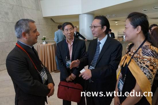 在土耳其欧洲纺织大学学术年会期间,韦校长一行与欧洲纺织大学联盟主席阿道夫进行了亲切友好的交谈,阿道夫欣然接受邀请参加今年将在我校举办的第89界世界纺织大会,我校成为欧洲纺织大学联盟旗下《Autex》杂志团体会员。会上,我校代表团积极展开工作,与各国参会代表交流探讨,表达了与世界各国纺织服装院校建立合作关系的愿望,并欢迎更多的海外研究生来中国纺大交流学习。