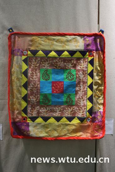 本次纤维艺术作品展展出了来自两校纤维艺术专业师生作品40余幅,两校通过各自的形式,诠释了纤维艺术的美。戴维斯分校的作品灵感来源于中亚、南亚查克拉嫁妆布的分配,具有很强的装饰性。以几何图案、吉祥符号为主,结合丰富的纤维碎片、贴花和刺绣、颜色和图案的密集排列,诠释了当代的查克拉风情。我校作品结合自身专业特色,利用中国传统文化工艺创作,诠释了华夏民族情怀。值得一提的是我校“_”苏珊教授在其作品中运用了新型材料pva(聚乙烯醇,无污染,可降解新型纺织材料),并将环保理念贯穿其中,创新手法令前来参观的同学感受到最前沿的纤维艺术理念,拓展了同学们对纤维艺术创作的国际视野。
