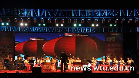 中秋佳节是中华民族的传统节日。对传统文化的弘扬是这次迎新晚会的一大特色。民乐合奏让高雅的民族艺术幻化成一个个沁人心脾的音符,古琴、扬琴、二胡,弦音合奏;长笛、竹箫、葫芦丝,瑟瑟笙箫。让全场观众领略到了中华民乐的博大精深。民族歌曲《在那东山顶上》将高亢的声线与柔美的舞蹈完美结合在一起,而作为压轴节目的《中华儿女情》则用强劲的鼓点和活力十足的舞狮表演将吉祥如意的祝福带给纺大,送给每一位即将开始大学生活的2013级新生。