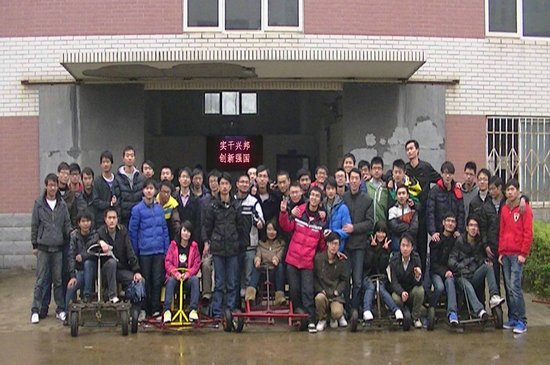 (机械卓越班同学携卡丁车与工程实训中心指导老师赛后合影)
