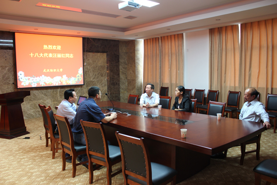 她曾经是只有初中文化程度的农村女孩儿,却把报告做进了大学课堂;她是纺织厂的一名基层女工,却被推选为中共十八大代表。9月21日,我校国际学术交流中心第一次正式启用,用来迎接一位尊敬的客人,她的笑容与声音让在场的每一位师生铭记。她,就是湖北三维纺织有限公司(罗田)细纱车间教练员、“湖北省劳动模范”、 “全国操作能手”、“全国五一劳动奖章”获得者汪丽红。