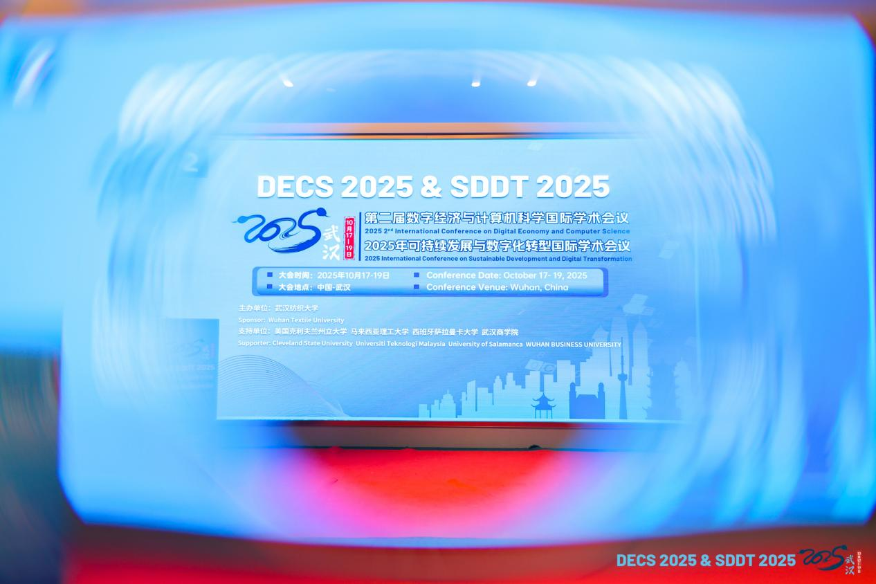 10月18日,DECS 2025 第二届数字经济与计算机科学国际学术会议与 SDDT 2025 年可持续发展与数字化转型国际学术会议,在武汉圆满落幕。本次会议由武汉纺织大学计算机学院主办,美国克利夫兰州立大学、香港珠海学院、马来西亚理工大学、西班牙萨拉曼卡大学及武汉商学院等知名院校鼎力支持,吸引了国内外众多专家学者线上线下共赴学术盛宴。