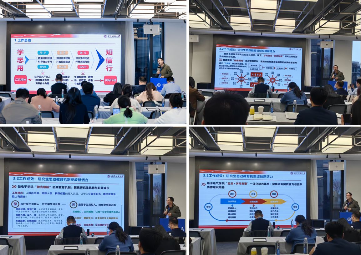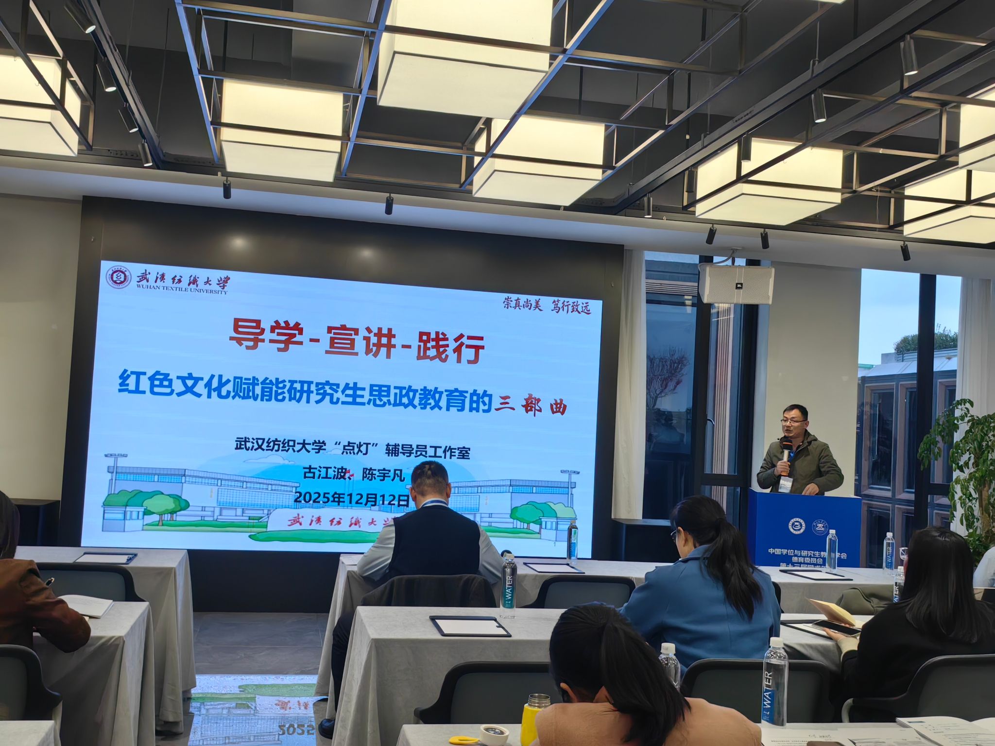 本次会议论坛从全国各高校报送的研究生思政教育成果中遴选了部分成果进行交流,我校古江波、陈宇凡老师报送的《导学-宣讲-践行:红色文化赋能研究生思政教育的“三部曲”》成功入选,并获邀作专题报告。论坛中,古江波介绍了团队近年来依托管理学院、微电子学院、电子电气学院实施红色文化赋能思想政治教育的实践探索情况,解读了该项目践行“双主体”育人理念、打造“学思用贯通、知信行统一”育人闭环的工作思路,从“在行进中导学,牵动‘看’与‘思’并行”“在融会中宣讲,促进‘学’与‘育’融合”“在奉献中践行,推动‘知’与‘行’合一”三个方面报告了具体工作做法,并展示了该项目形成的“益起阳光”“微光领航”“思政+学科竞赛”等思政工作创新品牌。