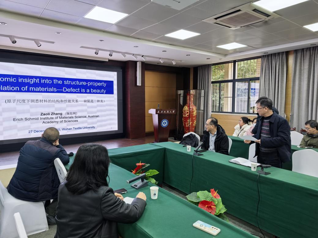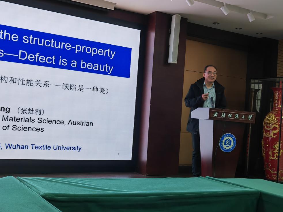 12月26日上午,武汉纺织大学第928期阳光论坛在阳光校区行政楼115会议室顺利举行。本期论坛由微电子学院主办,特邀奥地利科学院资深研究员张灶利作题为《原子尺度下洞悉材料的结构和性能关系——缺陷是一种美》的学术报告。微电子学院教师、研究生及部分本科生参加了论坛。论坛由微电子学院副院长(主持工作)何云斌教授主持。