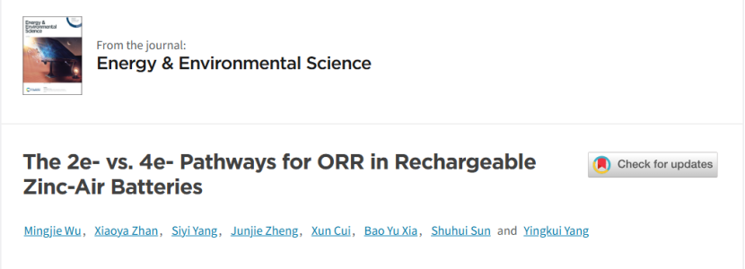 近日,纺织新材料与先进加工全国重点实验室杨应奎教授团队在Energy & Environmental Science期刊发表题为“The 2e⁻ vs. 4e⁻ Pathways for ORR in Rechargeable Zinc-Air Batteries” 的前瞻性观点性论文(论文链接: https://doi.org/10.1039/D5EE07166F)。论文第一作者兼通讯作者为武明杰教授,共同通讯作者包括杨应奎教授和加拿大孙书会院士。武汉纺织大学为论文第一通讯署名单位,有望在二次锌空气电池领域开创并引领了新的研究方向。