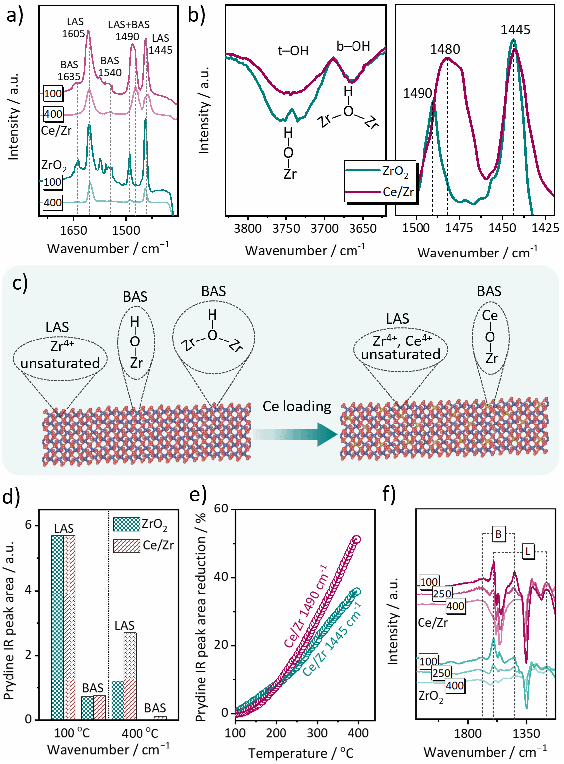 在中低温NH3–SCR反应中,Lewis酸位与Brønsted酸位长期被认为共同参与反应,但二者之间是否存在直接的物种转移关系一直缺乏明确证据。围绕这一关键科学问题,研究团队构建了高度分散的Ce/ZrO2催化剂体系,并结合原位DRIFTS、瞬态实验、调制激发红外以及18O2同位素标记等多手段开展系统研究。